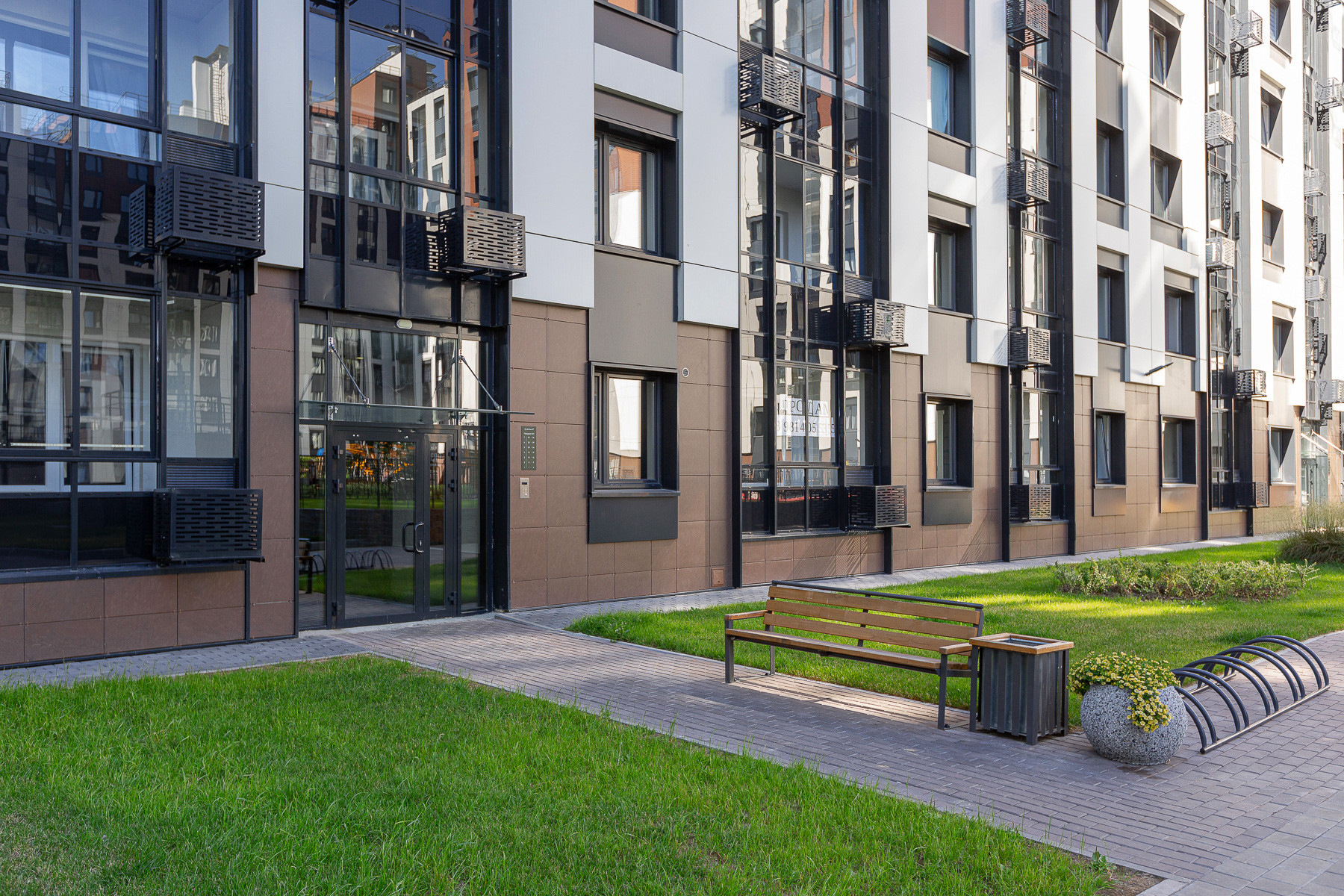Закрытая благоустроенная территория, видеонаблюдение, охрана. Окна квартиры выходят во двор.