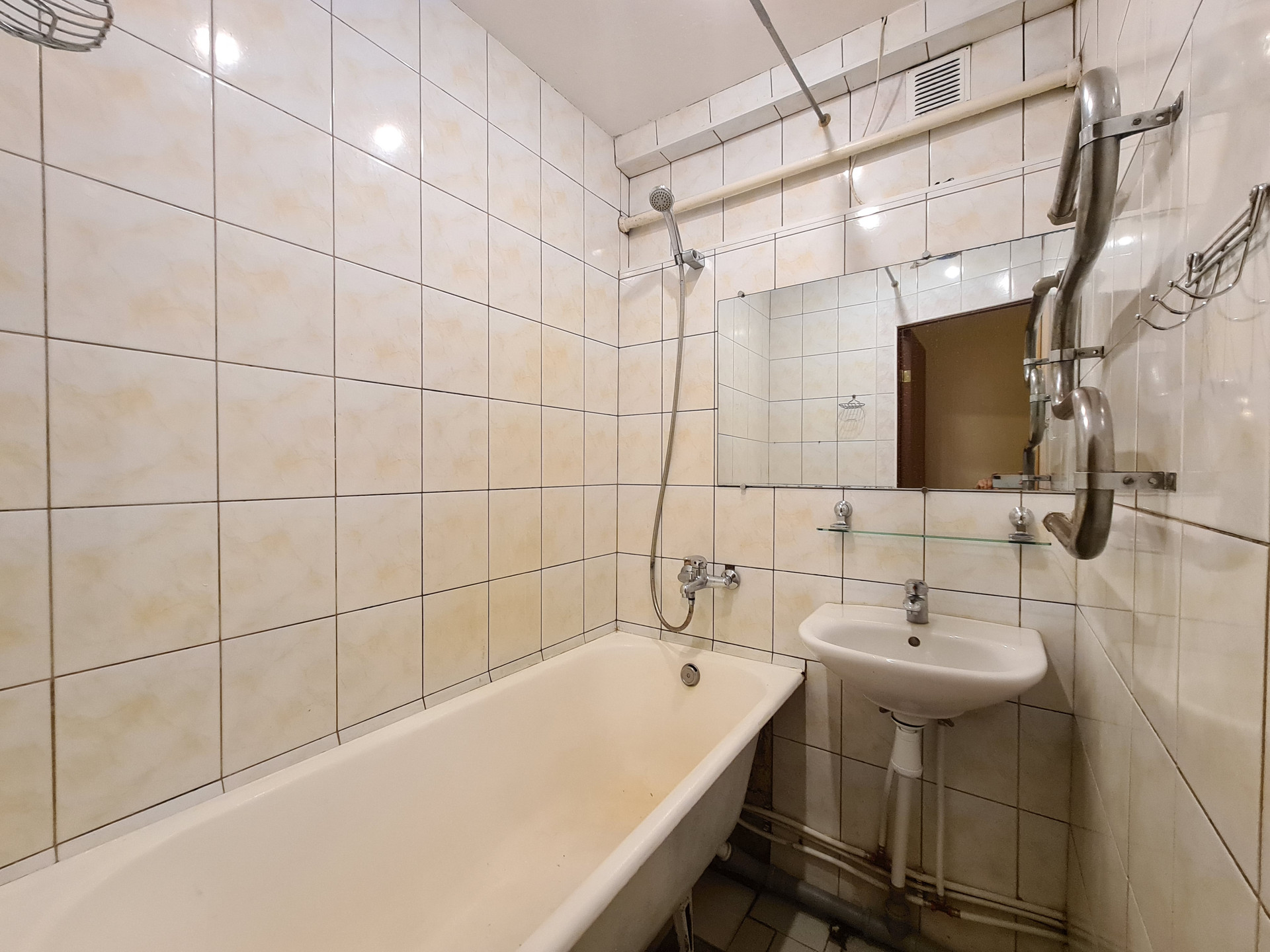 •    В квартире сделан хороший косметический ремонт. На полу на кухне и коридоре линолеум. В комнате паркет. В ванной и туалете на стенах и на полу кафель. Газовая плита. Стеклопакеты. Хороший напор воды, также есть бойлер и гигиенический душ. Теплый пол в ванной и туалете. Дом находится в тихом зеленом дворе.