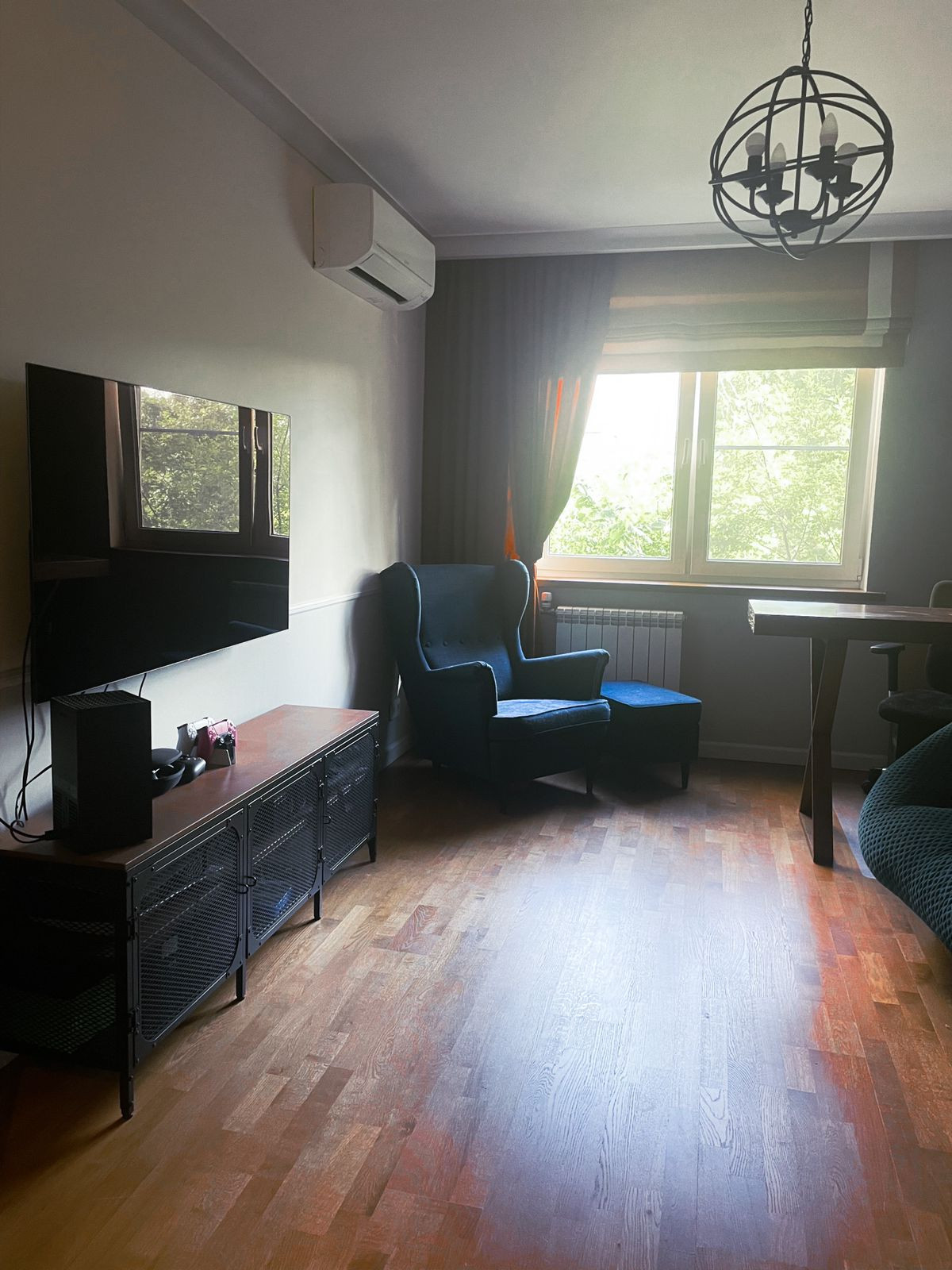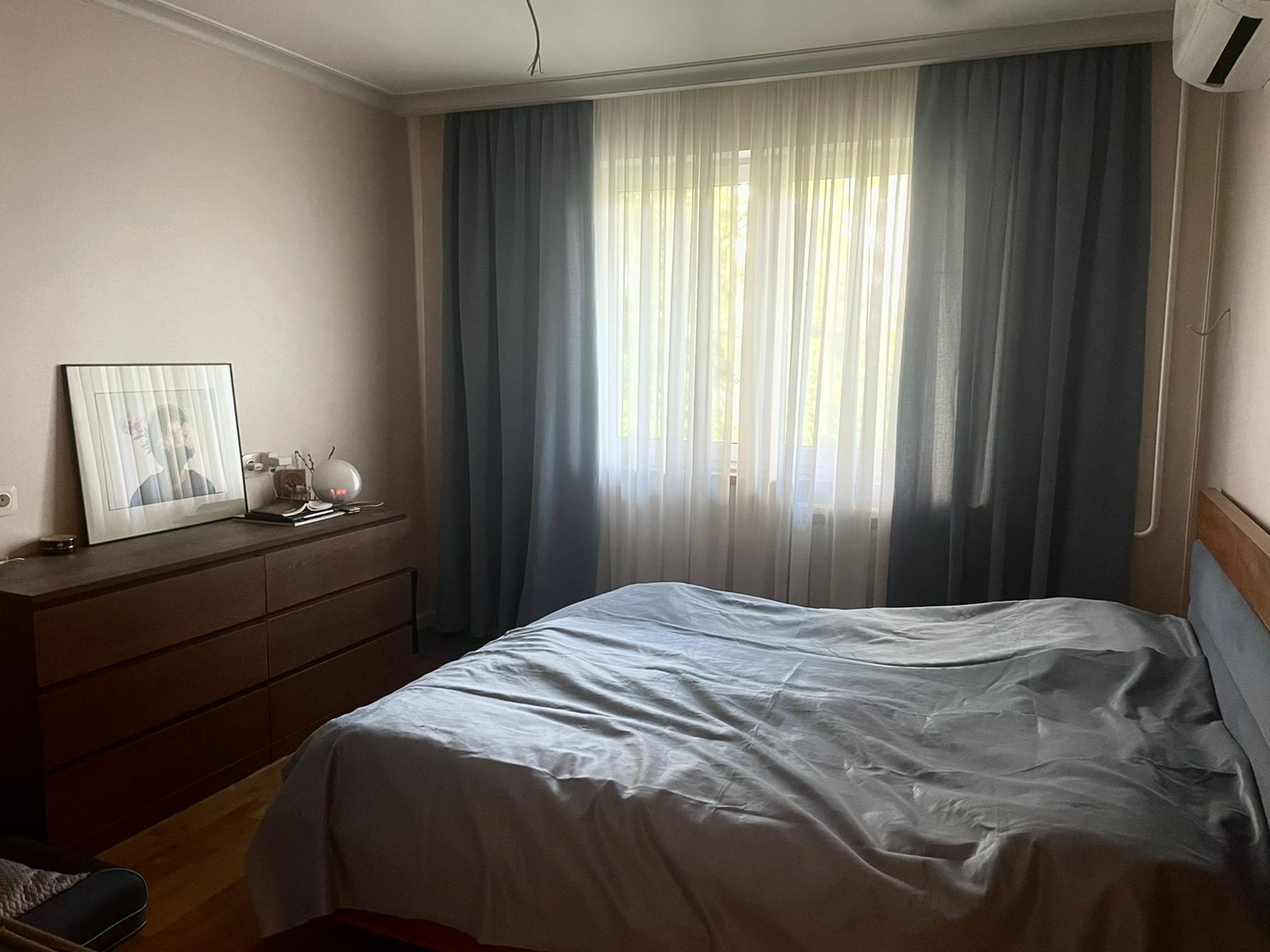 Паркетная доска. Новая входная дверь. Шторы из натуральной ткани, Германия и Италия. Выводы под два кондиционера смонтированы.