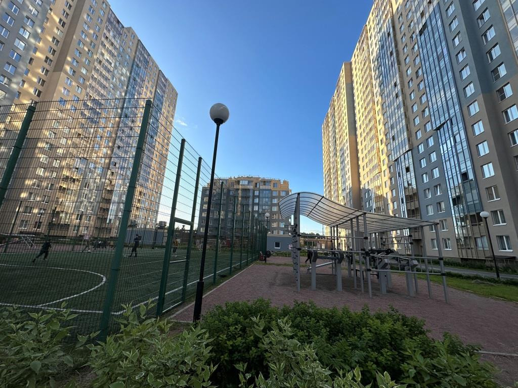 В нашем корпусе имеется 2 внутренних закрытых уютных двора «без машин» с детскими и спортивными площадками, а из подъезда выходим сразу на Арцеуловскую аллею.