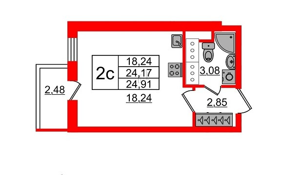 Общая площадь 24 м2