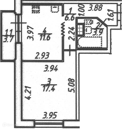 • Потолок: Без штукатурки.