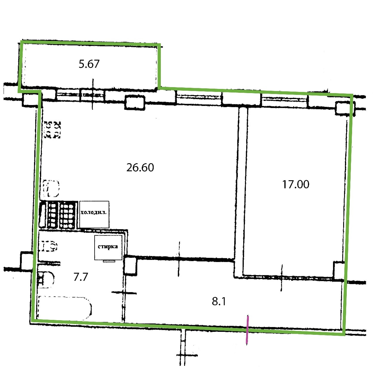Жилая площадь 43 м2