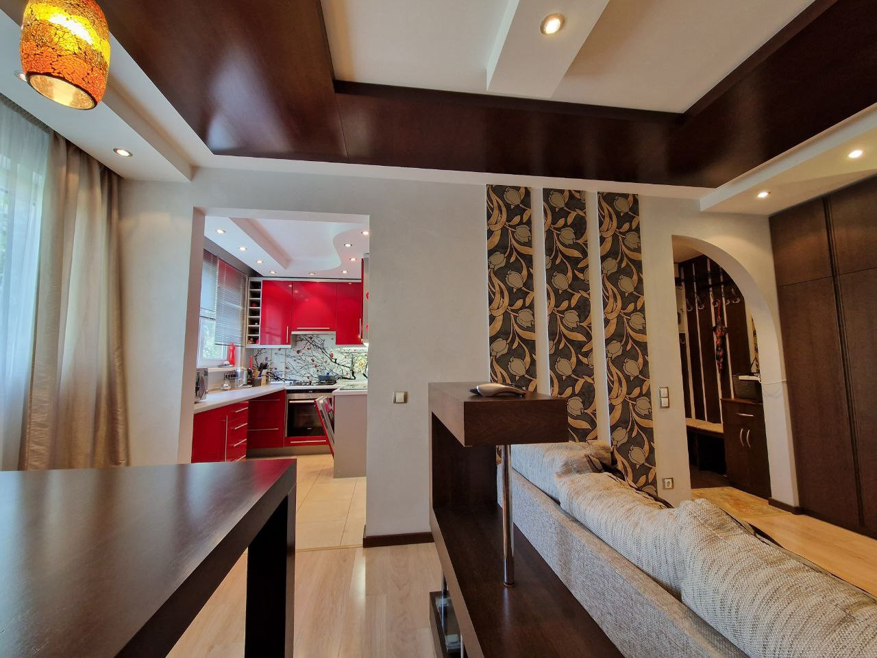 Квартира расположена на лучшем 5 этаже, вокруг много зелени, не слышно шума от дорог, меньше пыли, три окна выходят на тихую, зелёную аллею Поликарпова (северо-восток), одно окно с лоджией выходит на зелёный двор (юго-запад). Квартира светлая, очень уютная. В квартире выполнен дорогой, качественный ремонт под авторским надзором дизайнера. Продумана каждая деталь, что позволило создать эргономичный интерьер и увеличить жилое пространство (47 кв.м. жилой площади), избавившись от тёмных коридоров и грамотно выделив зоны хранения.