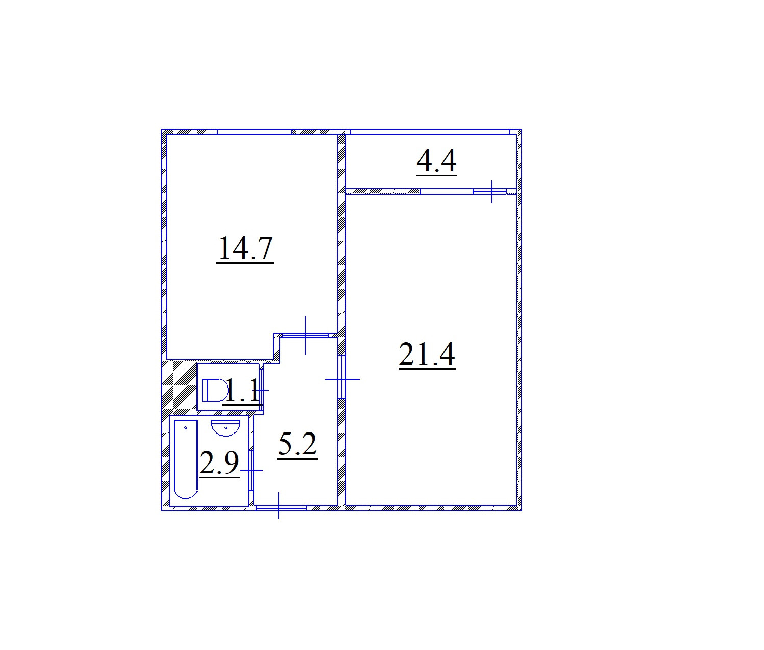 Жилая площадь 21.4 м2