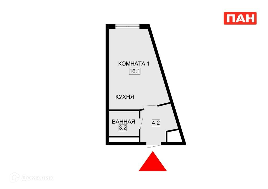 Жилая площадь 16.8 м2
