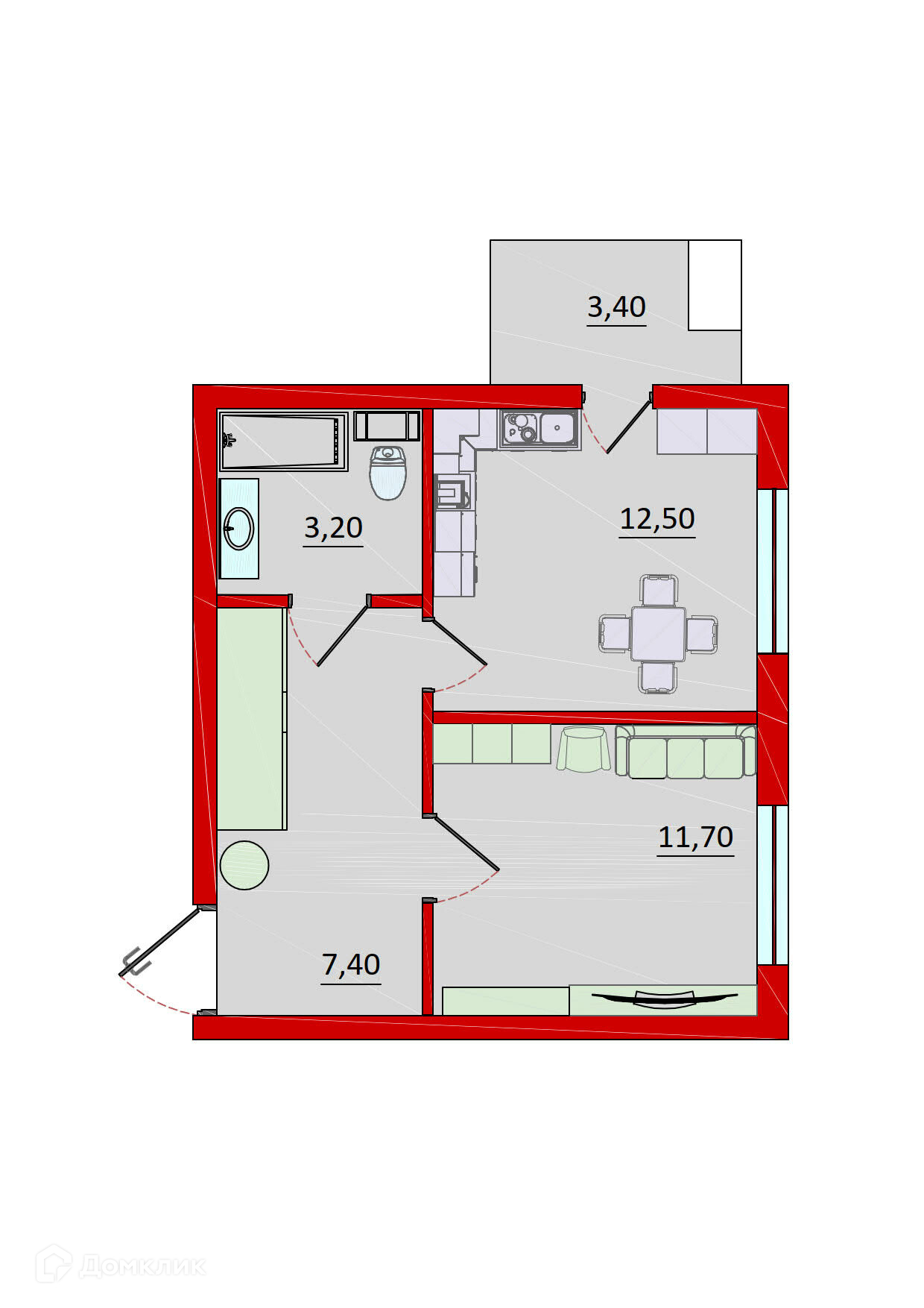 Общая площадь 34.8 м2