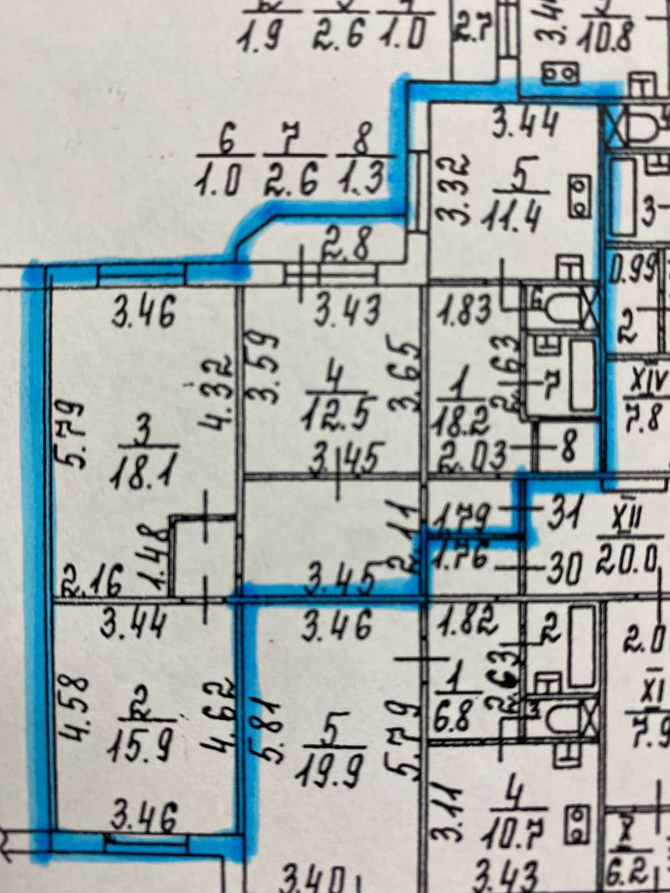 Общая площадь 81,8 м.кв., жилая 18+16+12,5 м.кв., кухня 12м.кв., высота потолков 2,65 м.