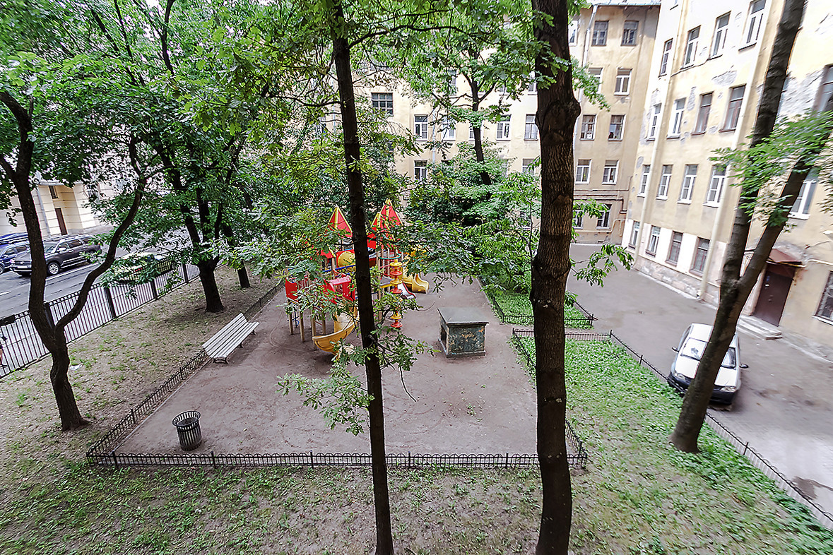 - окна кухни выходят во внутренний двор, окна в комнатах - на детскую площадку