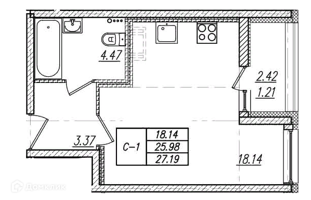 Общая площадь 26.9 м2