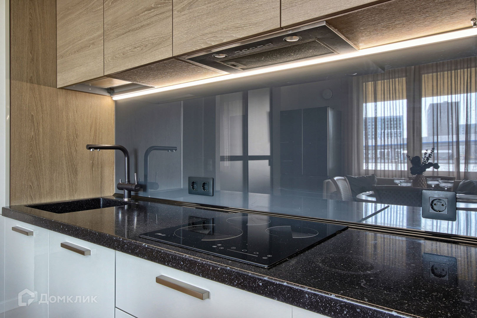 Квартиру строили для себя, использовали дорогостоящие материалы в отделке. Встроенная мебель выполнена по индивидуальному заказу. Кухня и шкафы - Mr.Doors. Техника Electrolux. Помимо большого холодильника Liebherr, предусмотрена еще отдельная встроенная морозильная камера. Максимально сохранена высота потолков, много сценариев освещения.