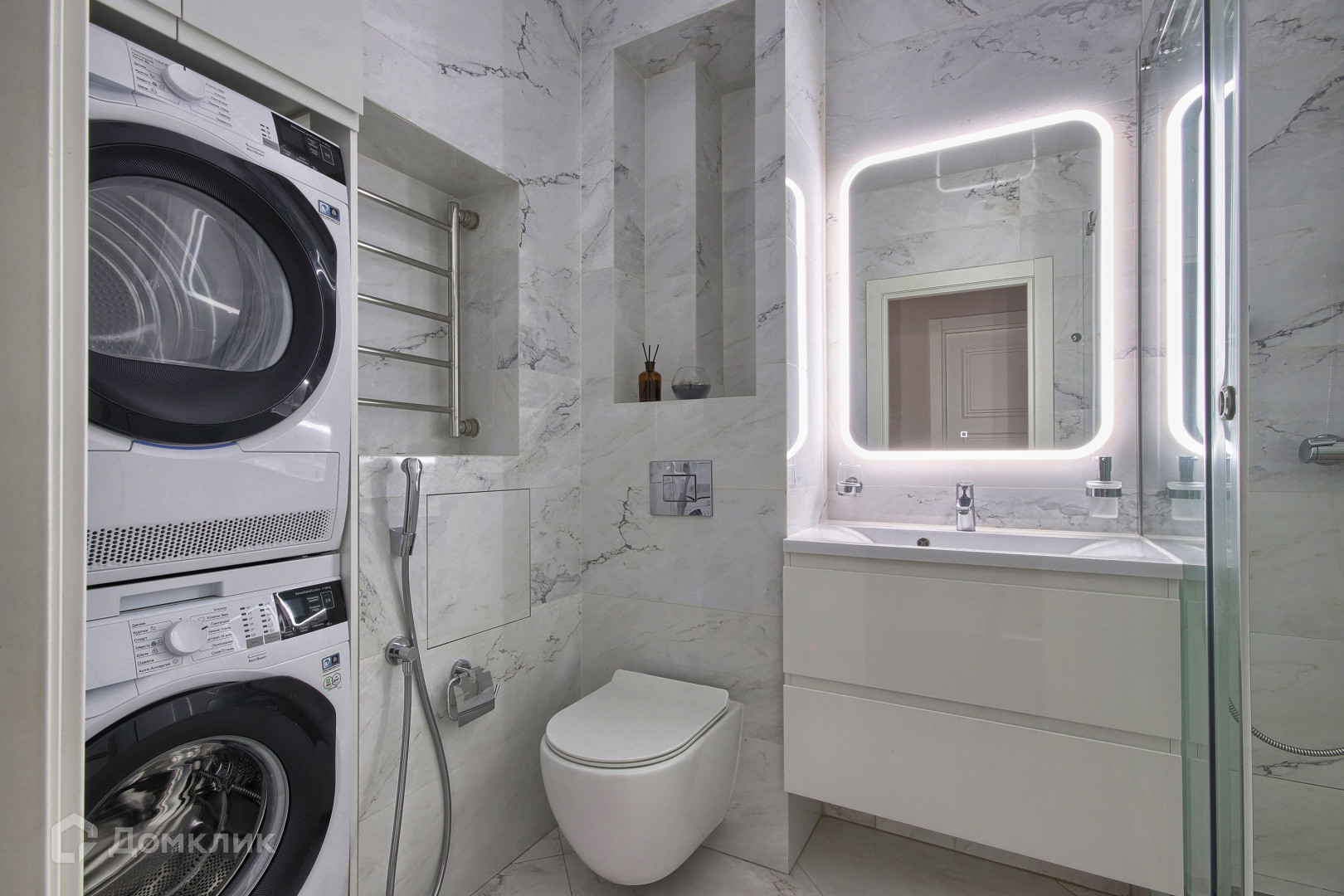 санузел с душевой и постирочной (стиральная и сушильная машины)