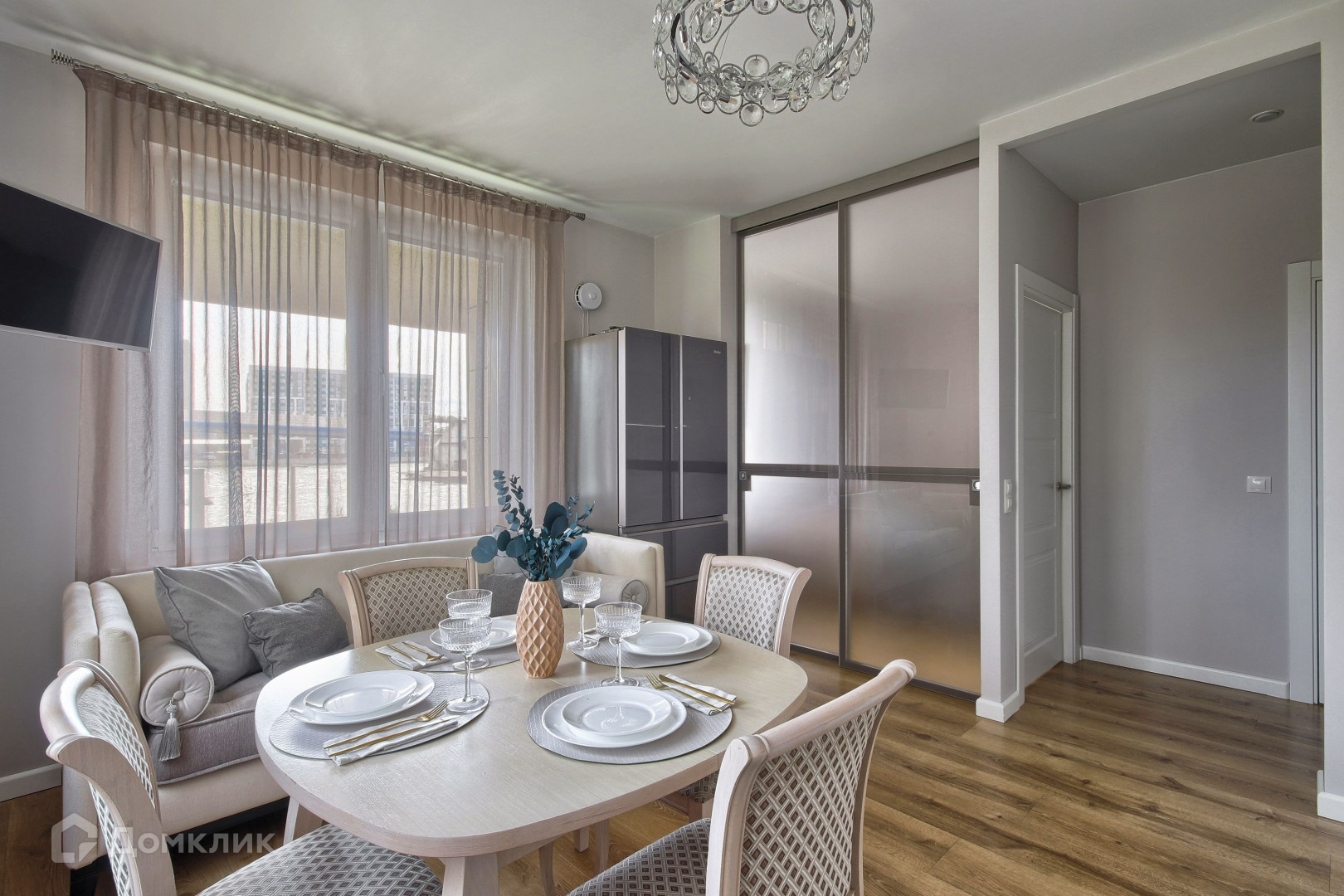В квартире выполнен ремонт по дизайн-проекту, площадь здесь использована максимально рационально. Планировка включает: