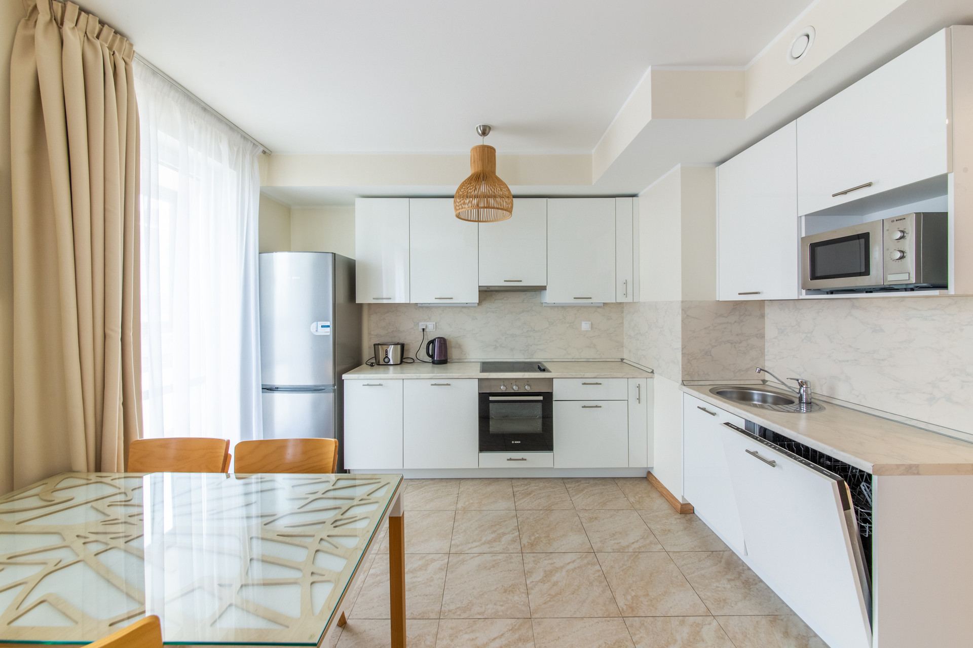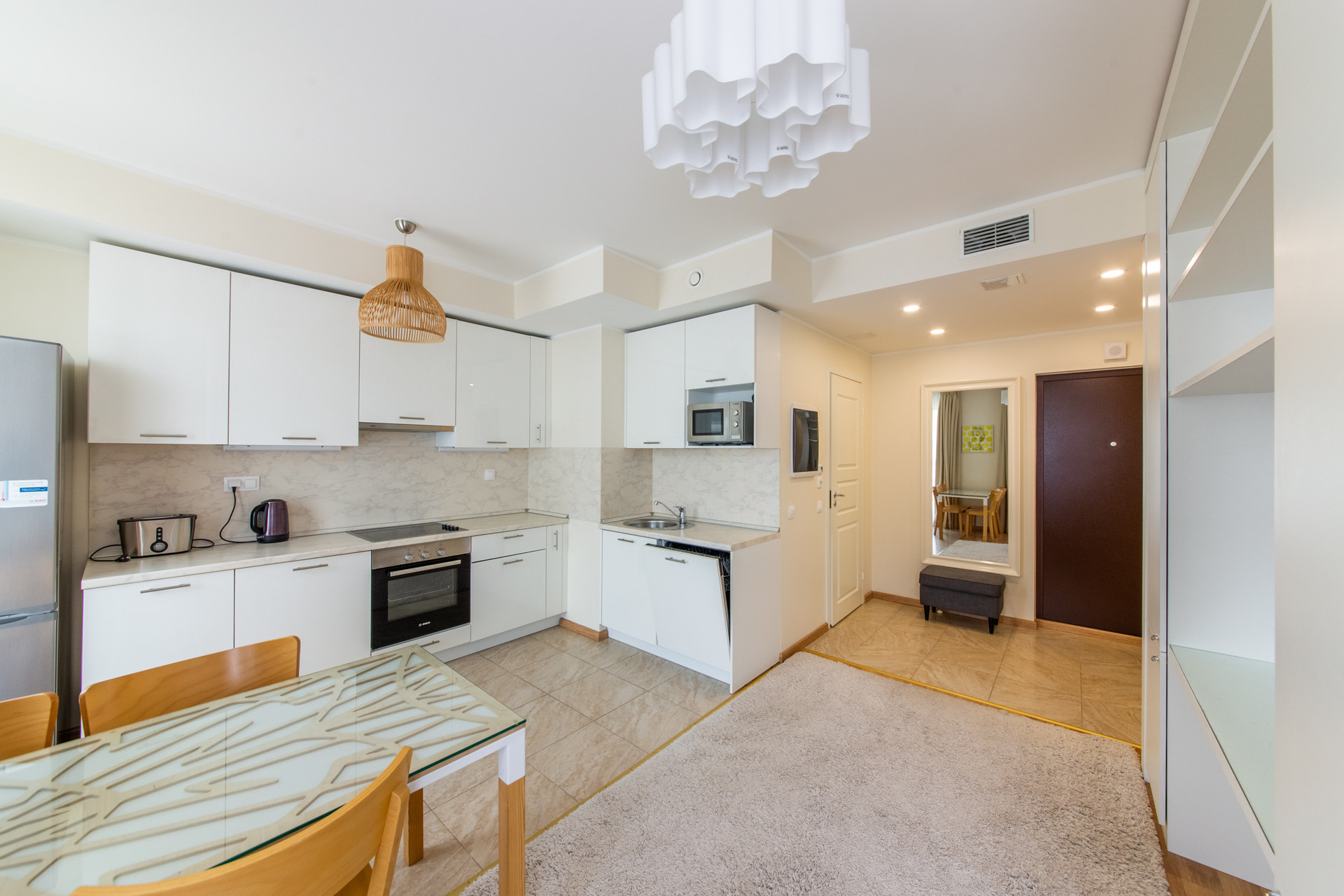 Вся мебель и встроенная техника остаются новому собственнику. Есть парковочное место и кладовка в подземном паркинге дома. Его стоимость оговаривается отдельно.