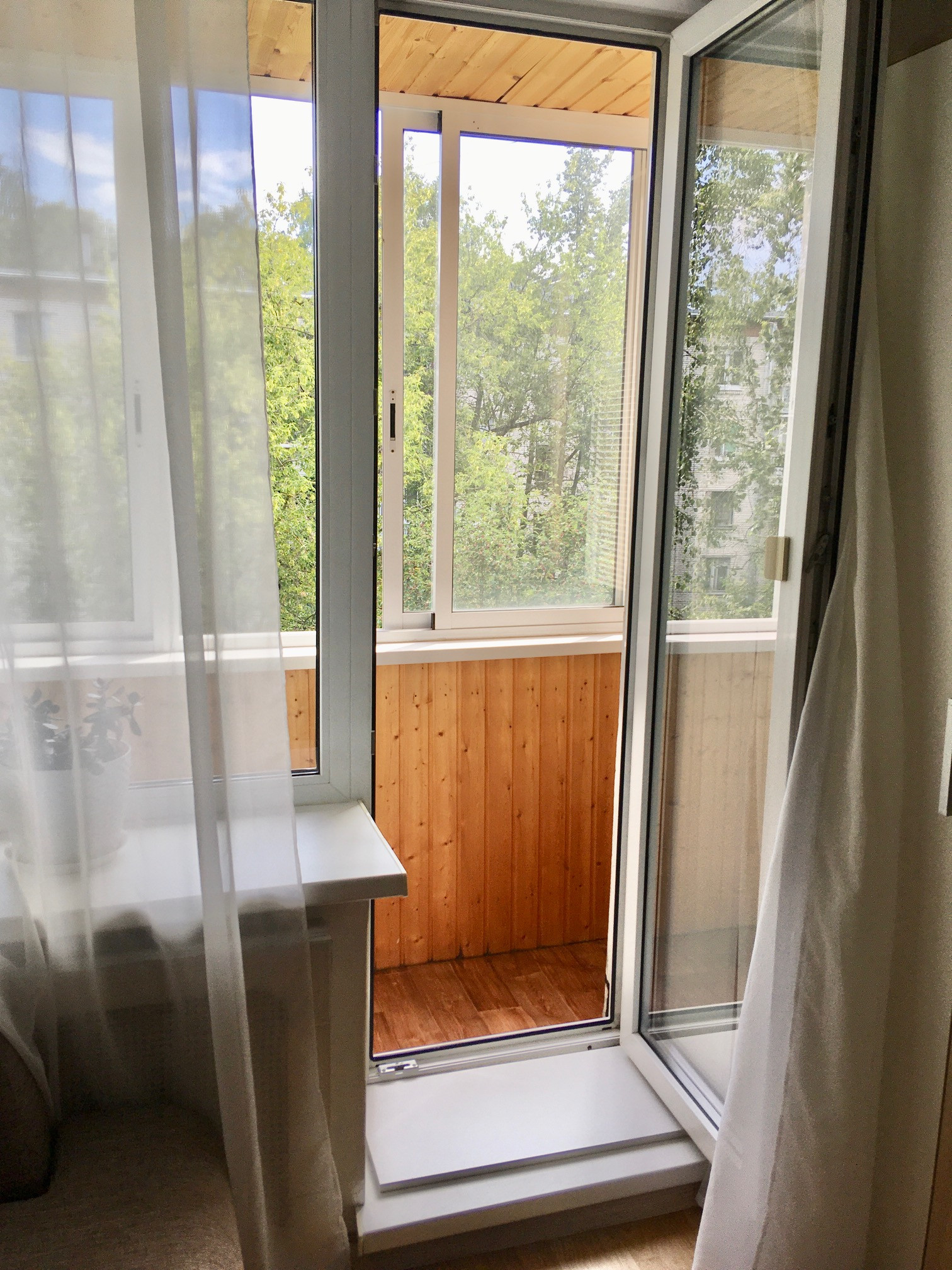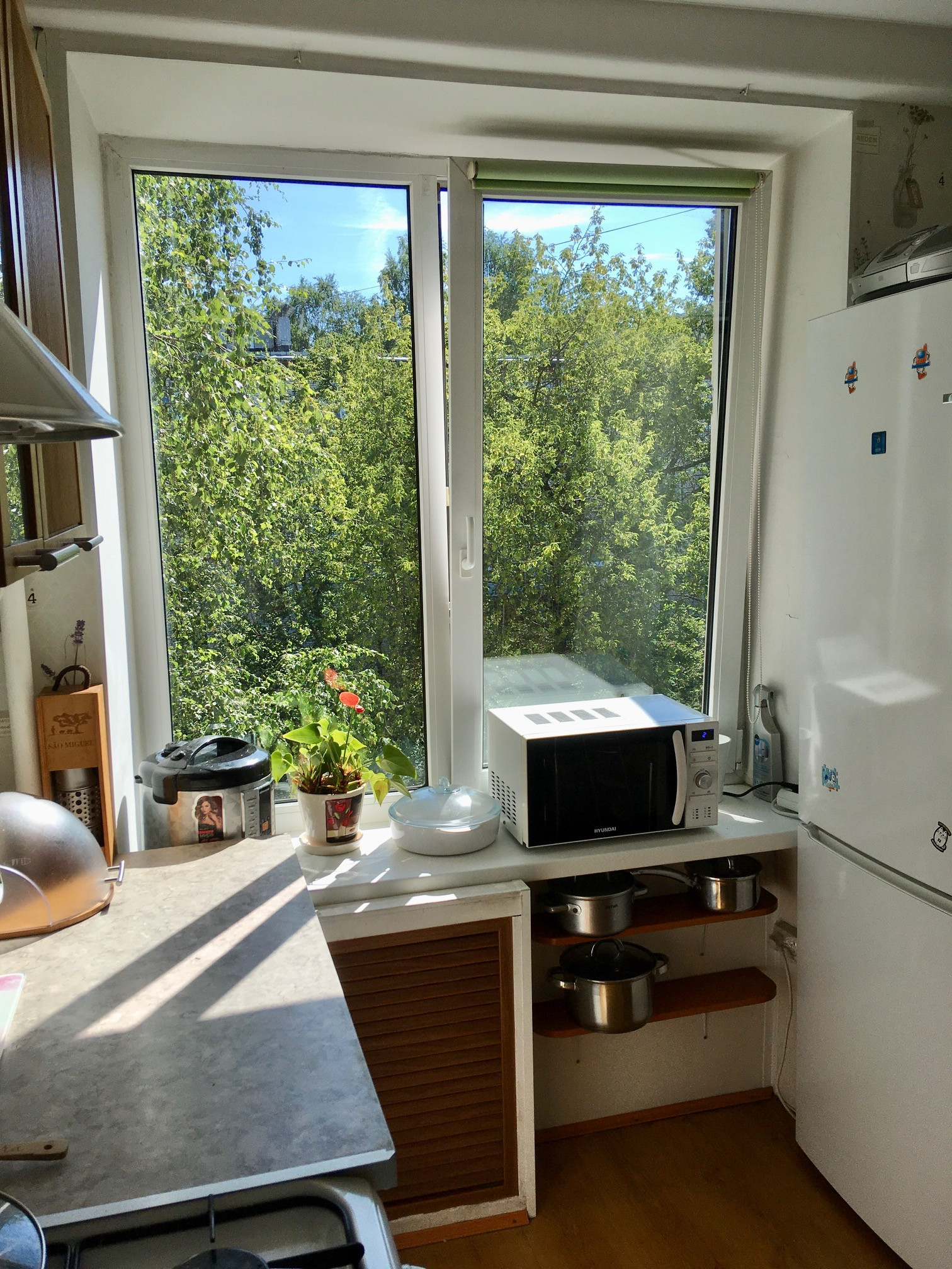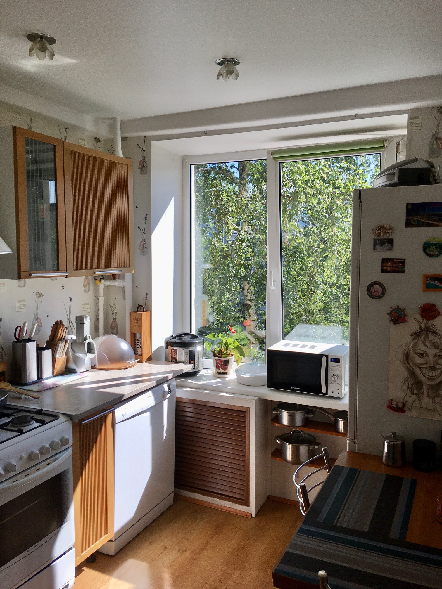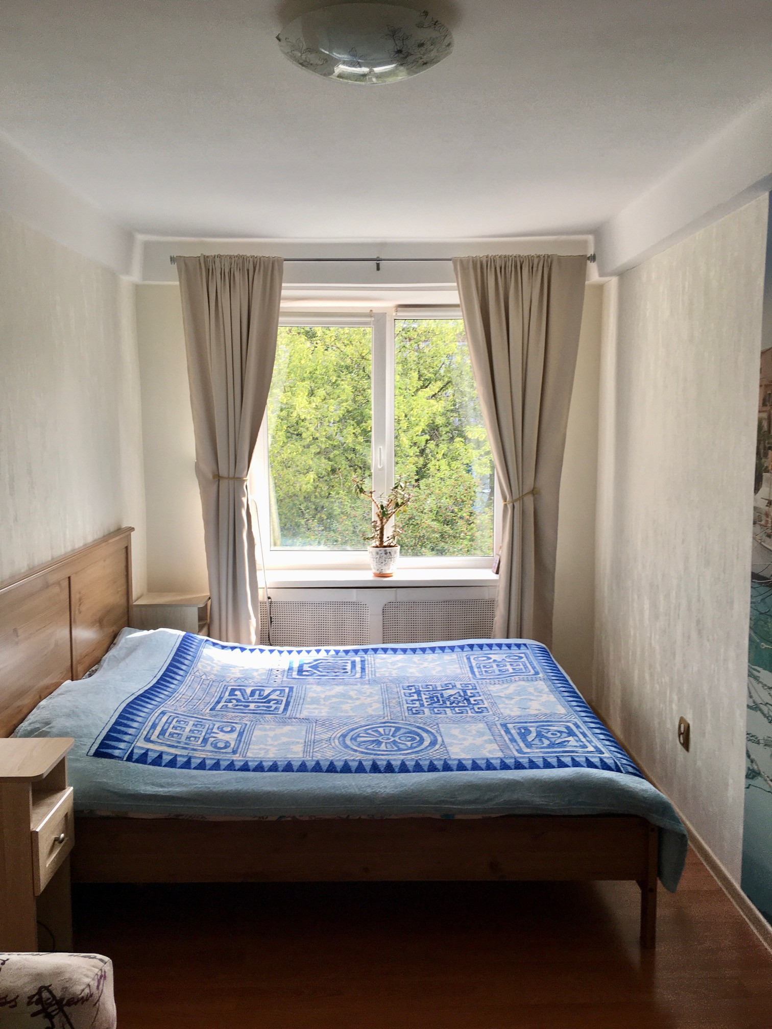 Все окна квартиры выходят на восток, на зелёную аллею с высокими деревьями - полное уединение и ощущение спокойной загородной жизни.