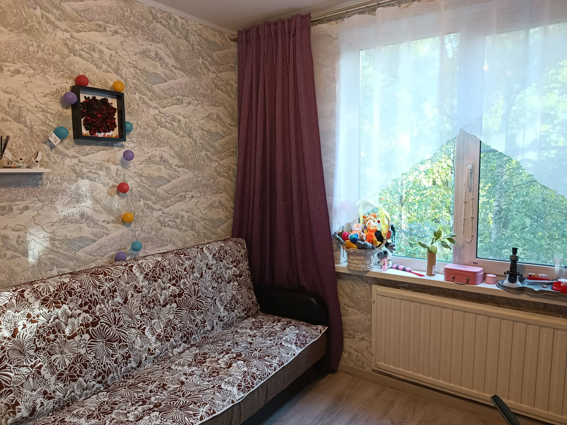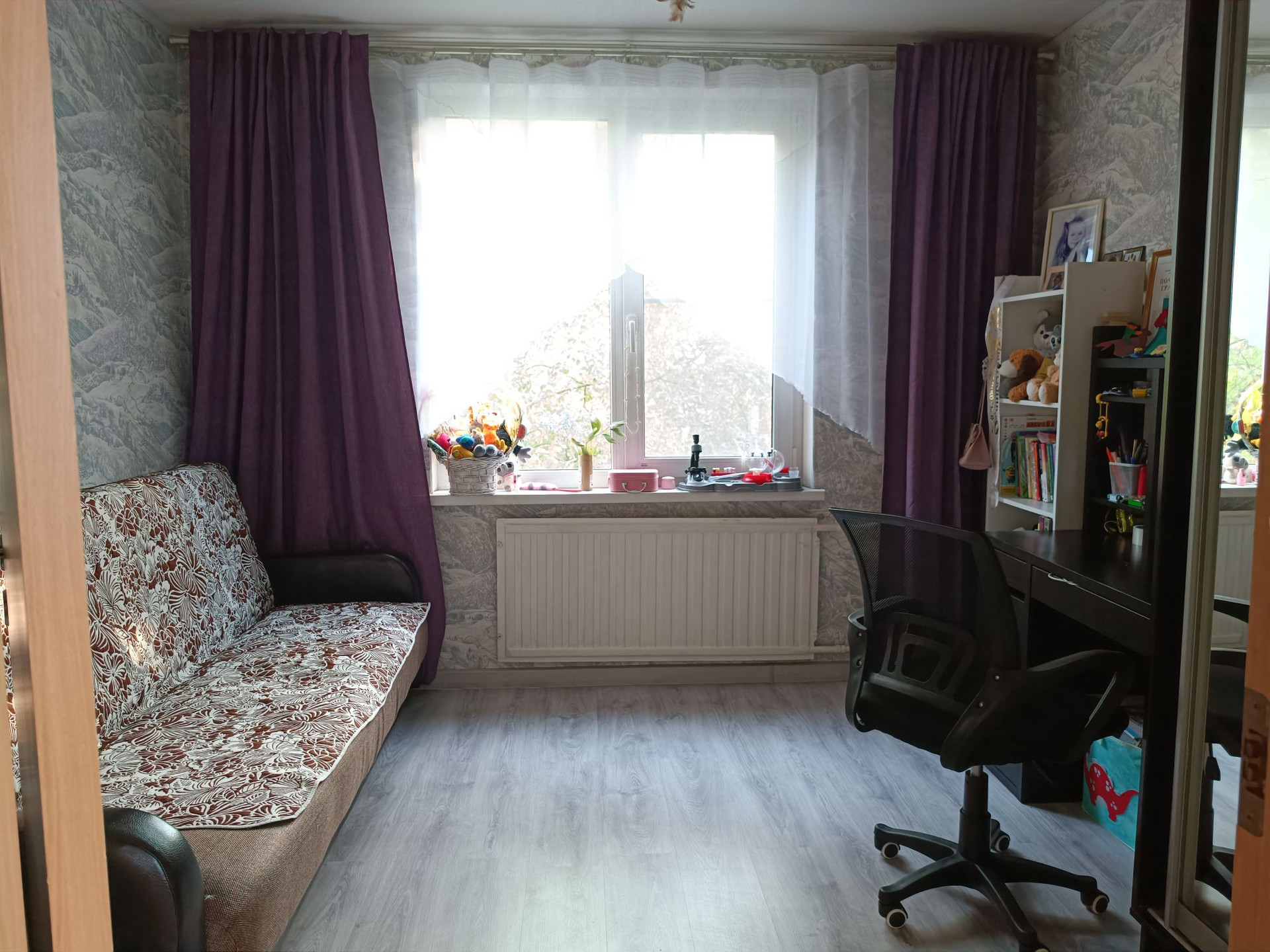 Продаётся уютная, компактная, трехкомнатная квартира в Невском районе. Сделан косметический ремонт в светлых тонах: окна-стеклопакеты, обои, на полу ламинат. В санузле плитка на полу и стенах, потолок - металлические рейки. Большой не застекленный балкон. Окна выходят на две стороны.