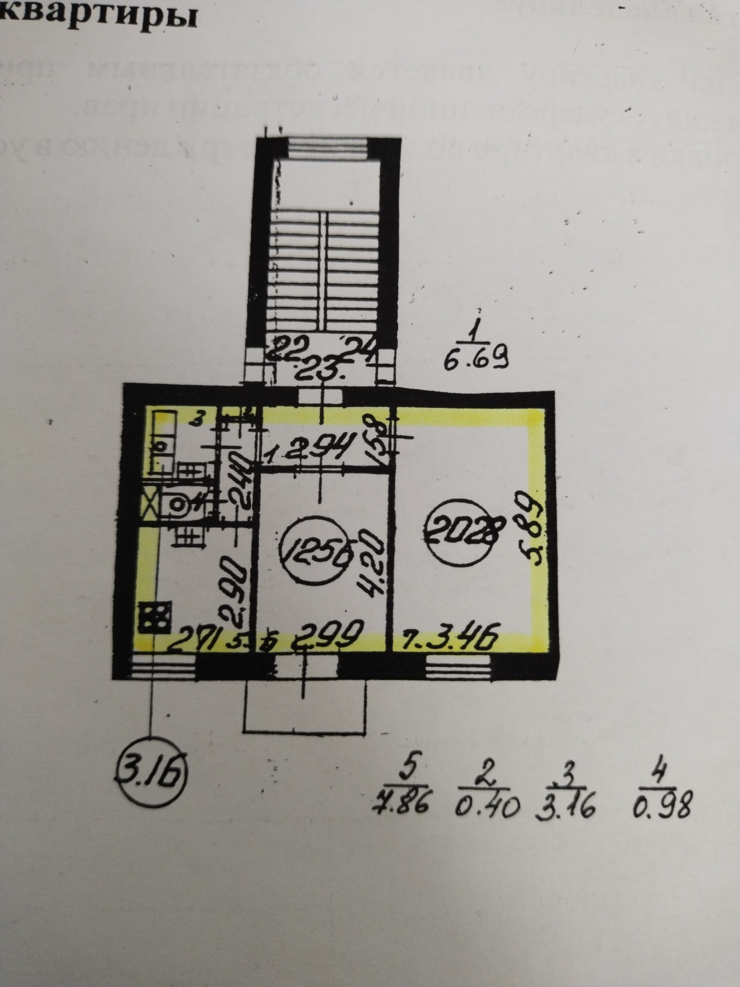 Жилая площадь 32.84 м2
