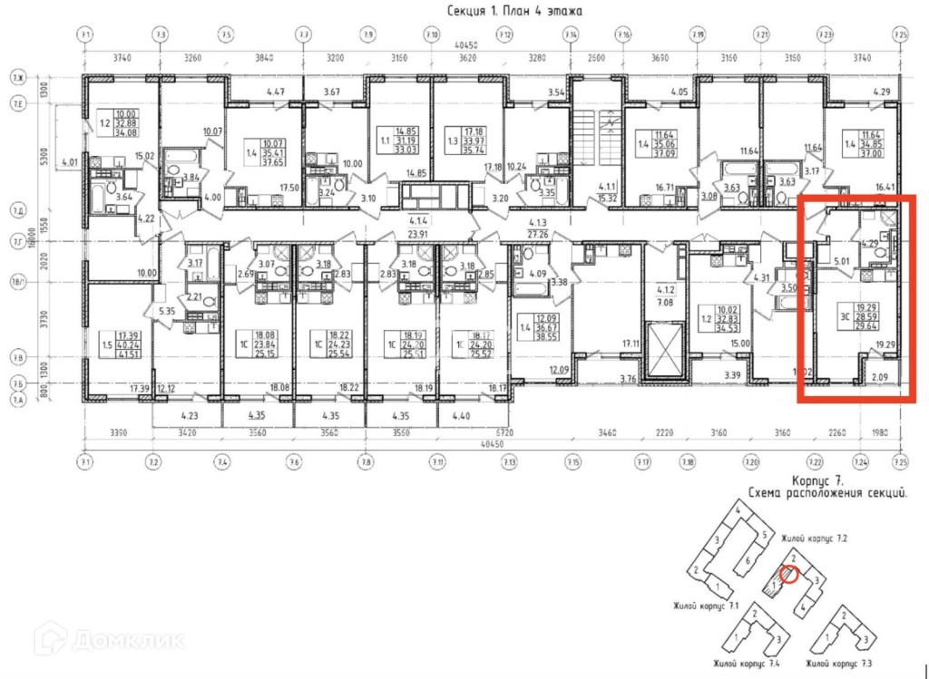 Приведённая площадь 29,64 кв м.