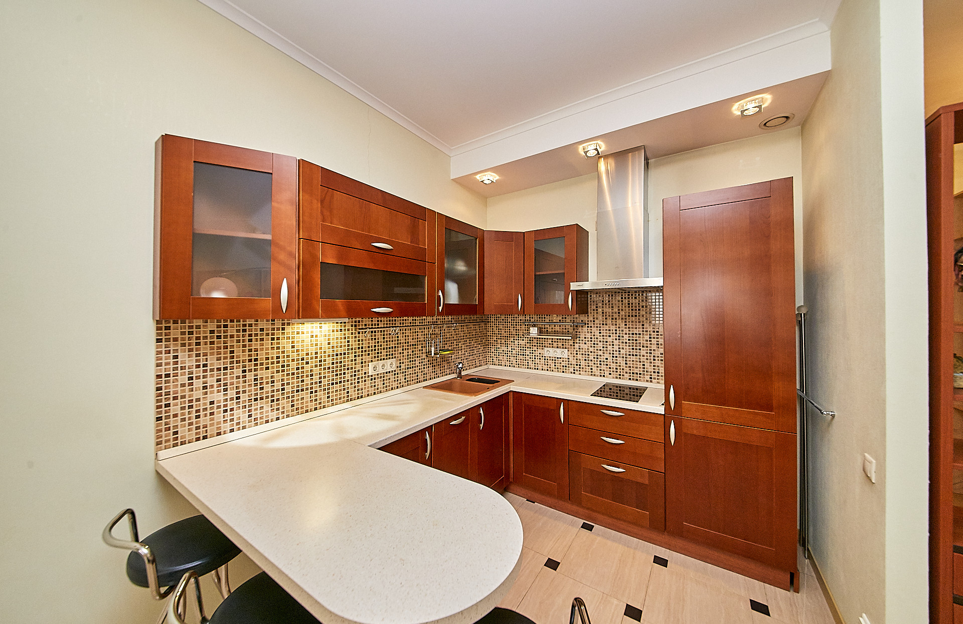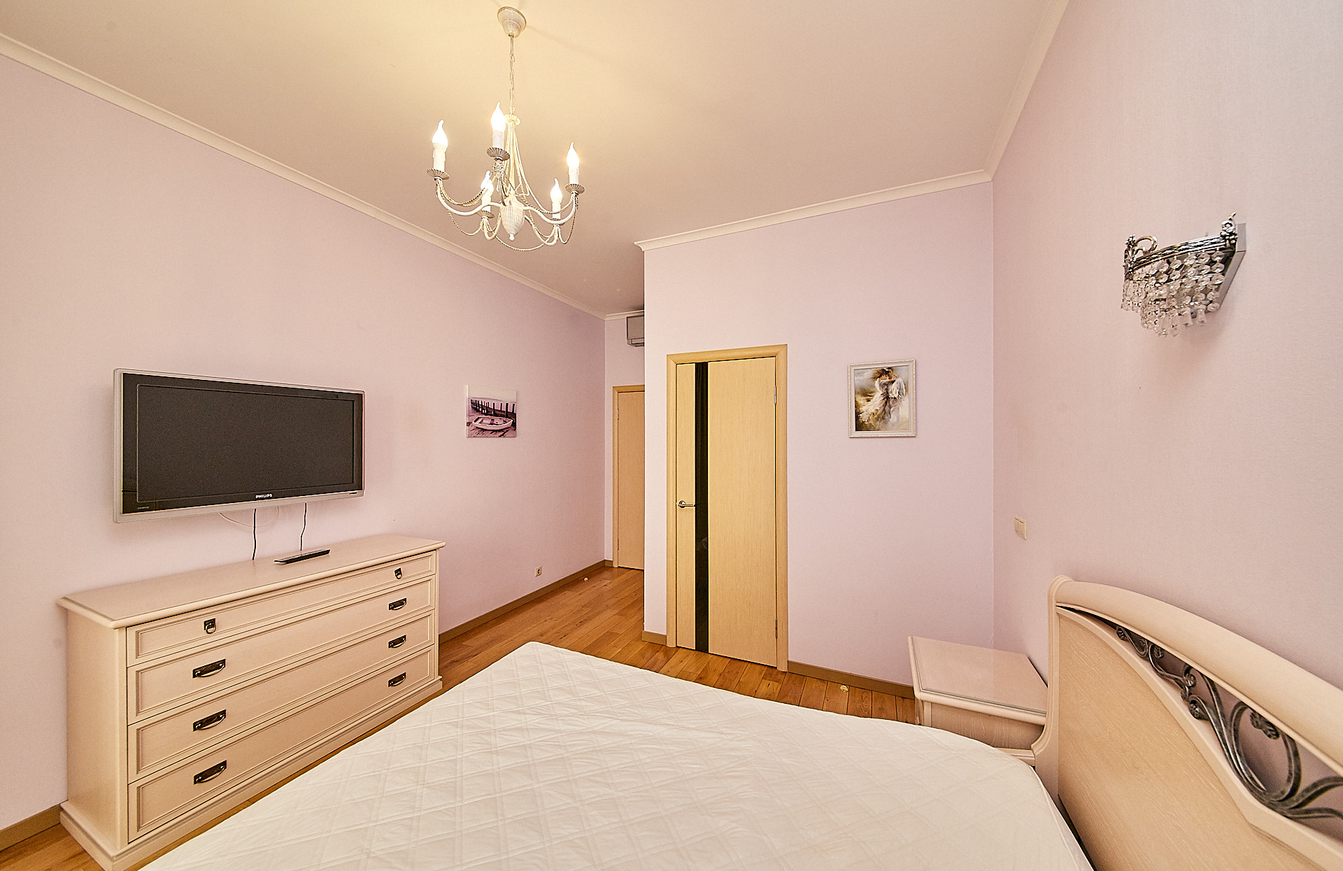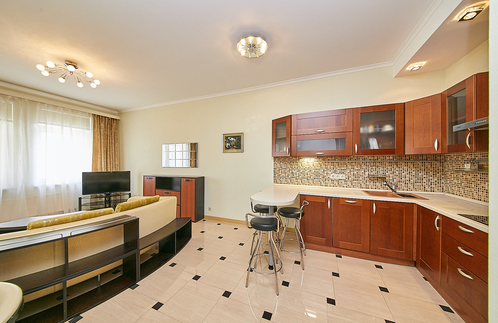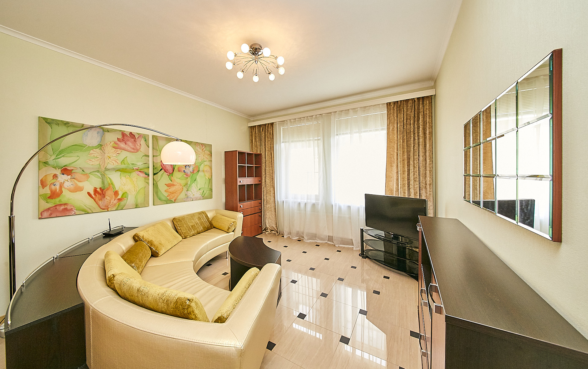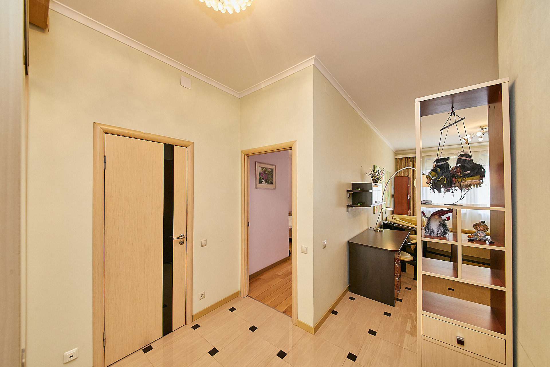 В квартире выполнен качественный ремонт с использованием экологических материалов, деревянные окна со стеклопакетами, установлены кондиционеры, есть все необходимое для комфортного проживания. Большая кухня - гостиная оборудованная современной техникой, изолированная спальня с гардеробной комнатой, а также дополнительная гардеробная в прихожей для чемоданов, сумок, верхней одежды и обуви.