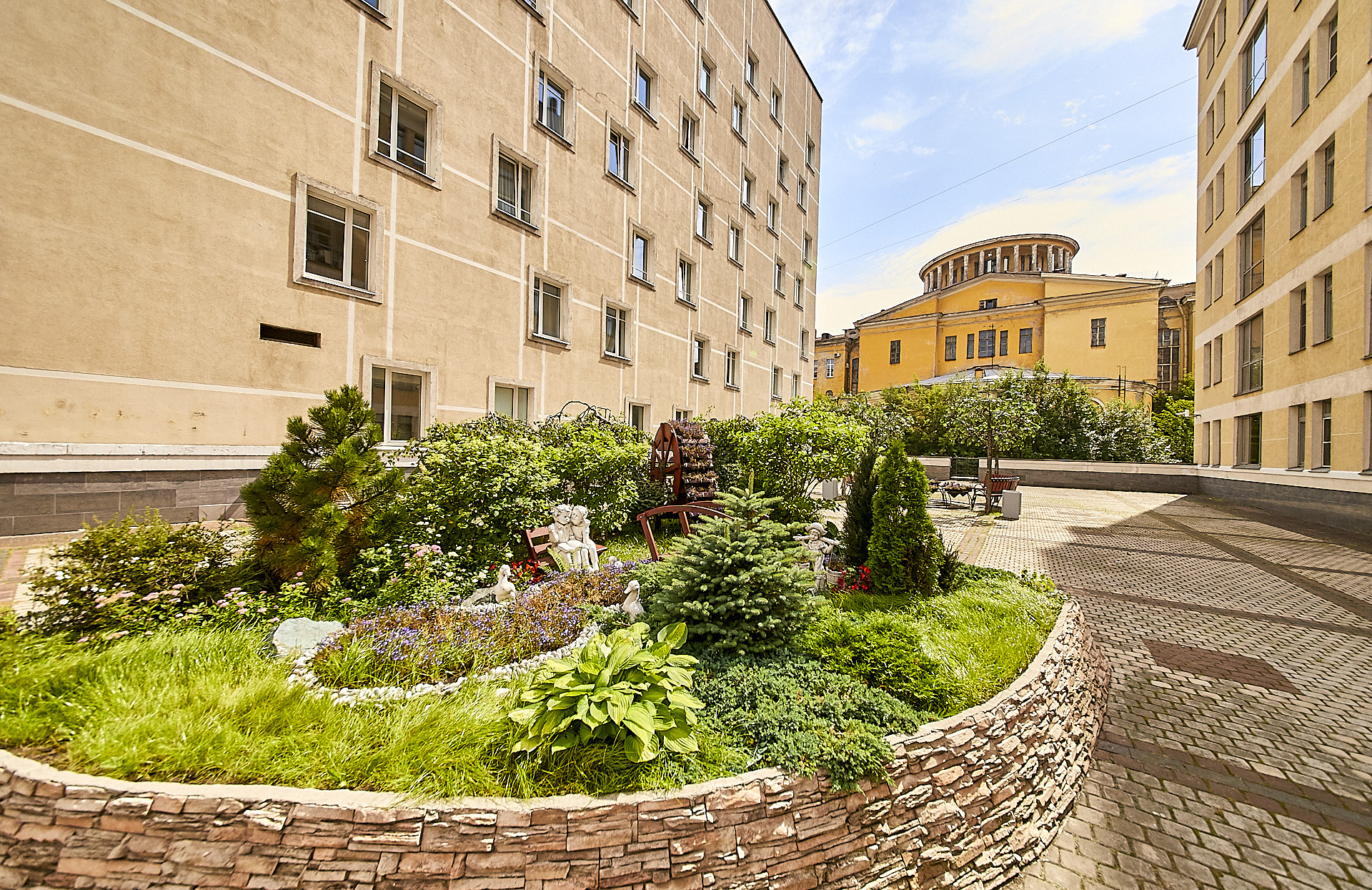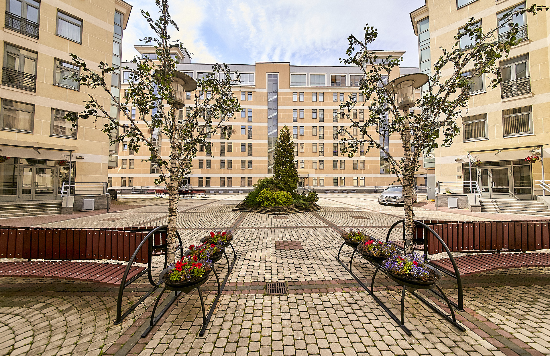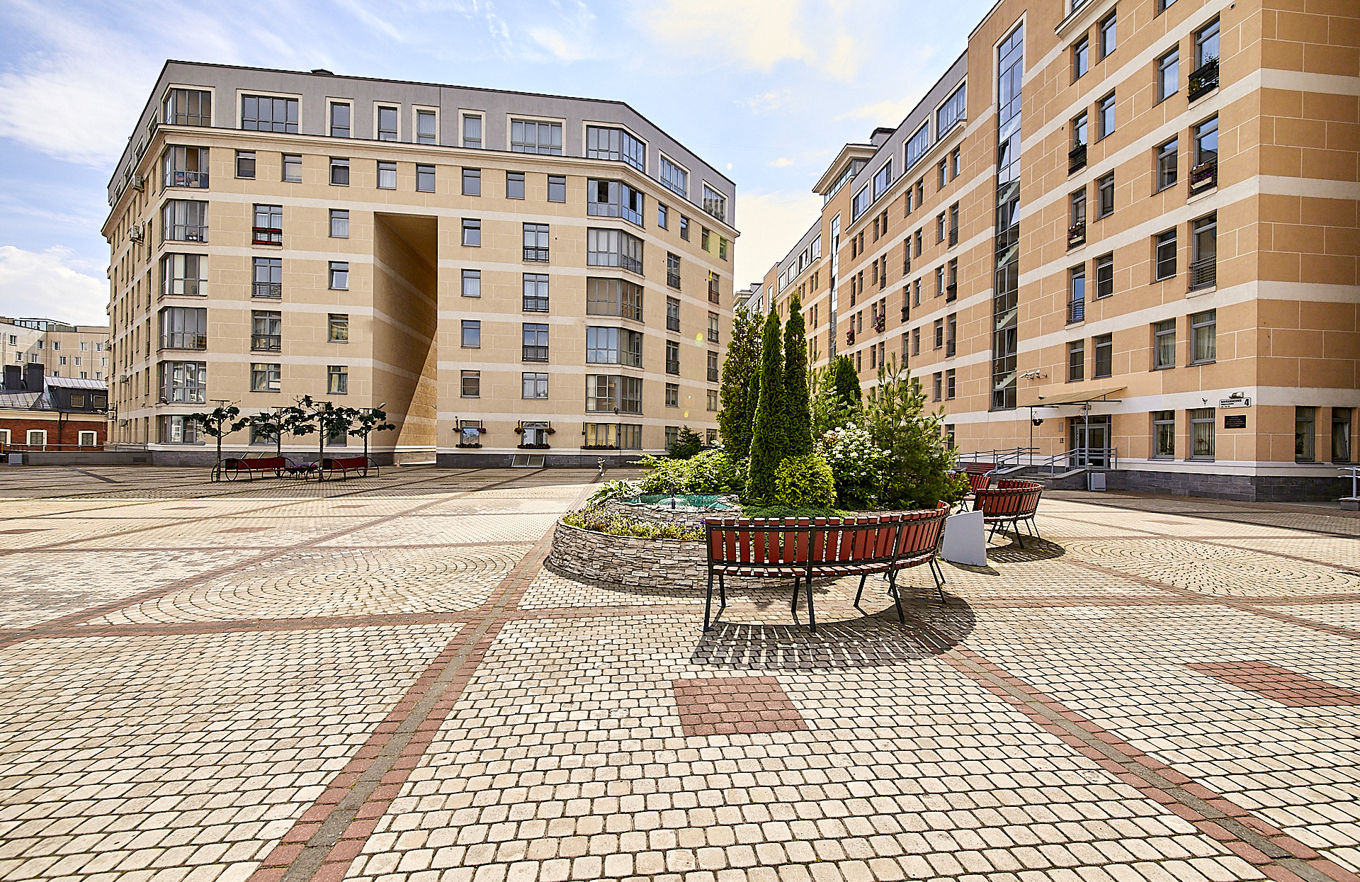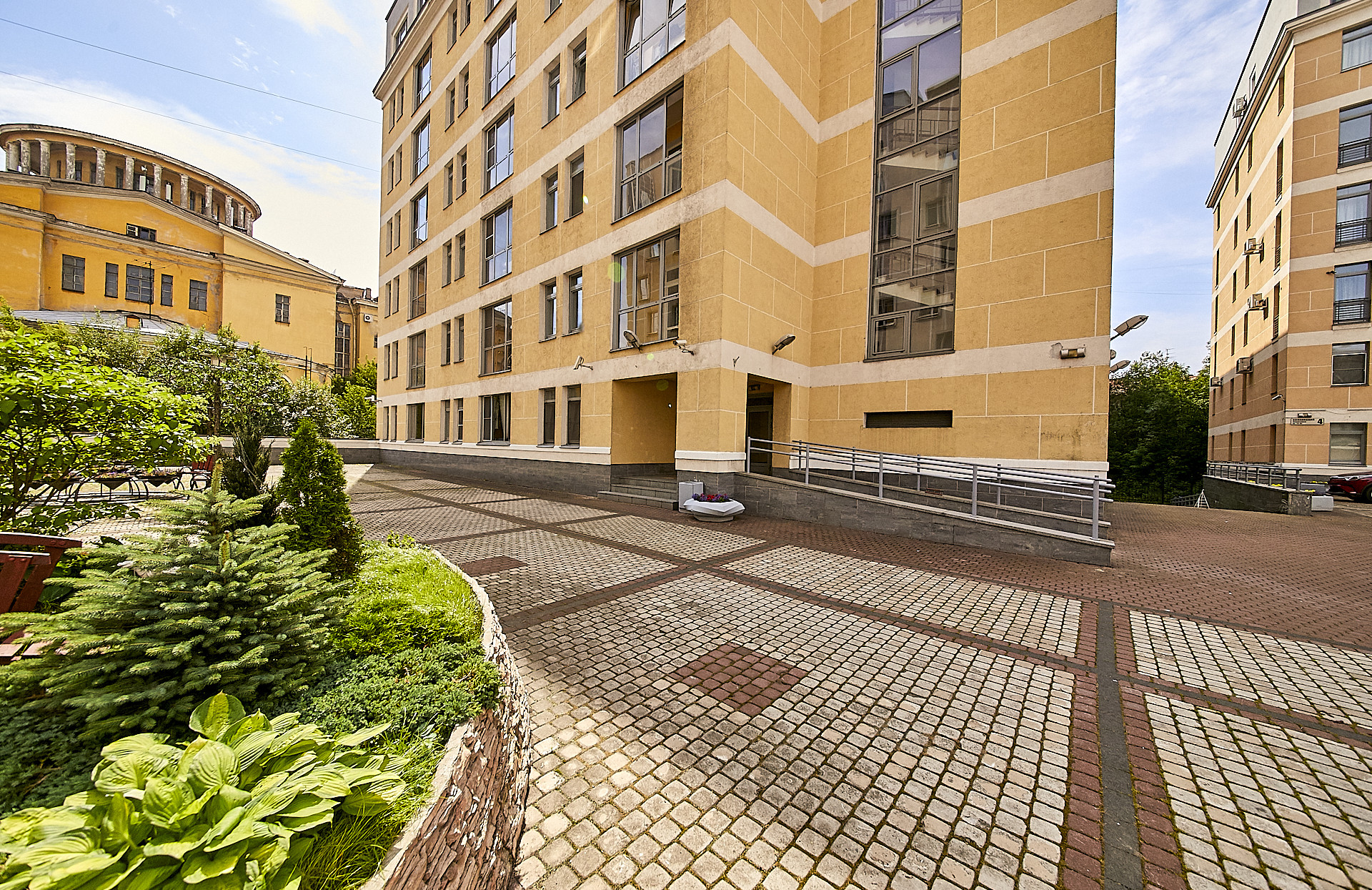 Территория комплекса большая и безопасная с трехуровневой системой охраны, двор без автомобилей, что позволяет комфортно гулять с детьми и питомцами. В комплексе на закрытой, охраняемой территории зоны отдыха , детская площадка, подземный паркинг с лифтами в подъезде, видеонаблюдение.