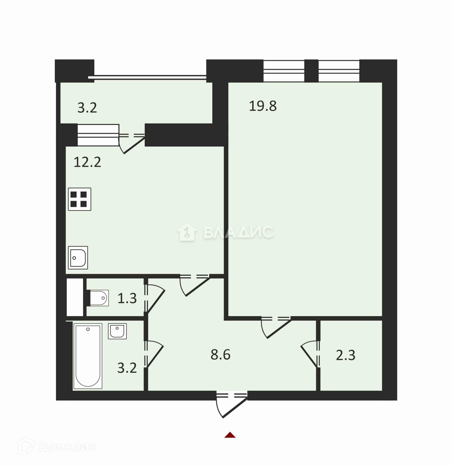 Жилая площадь 19.8 м2