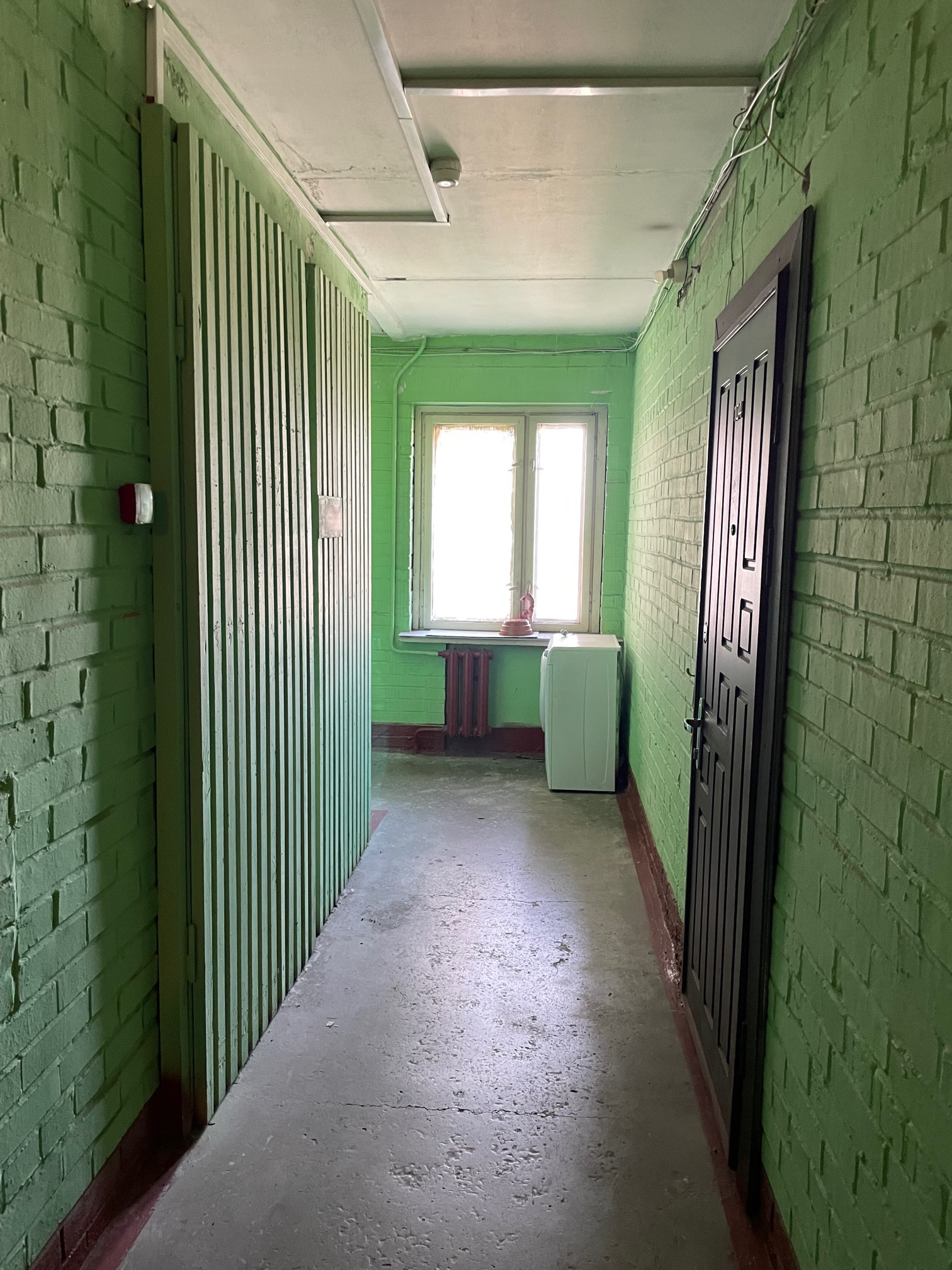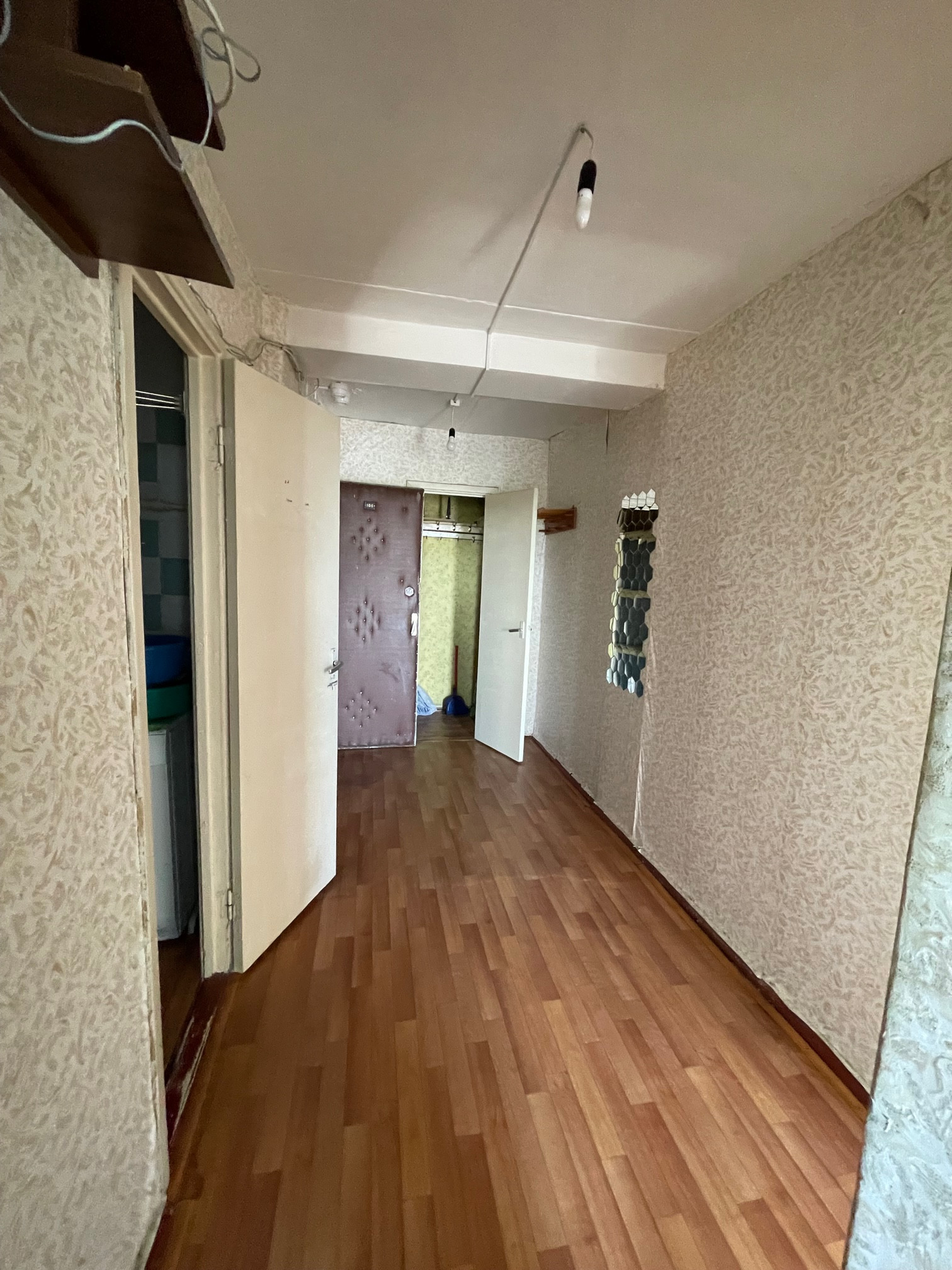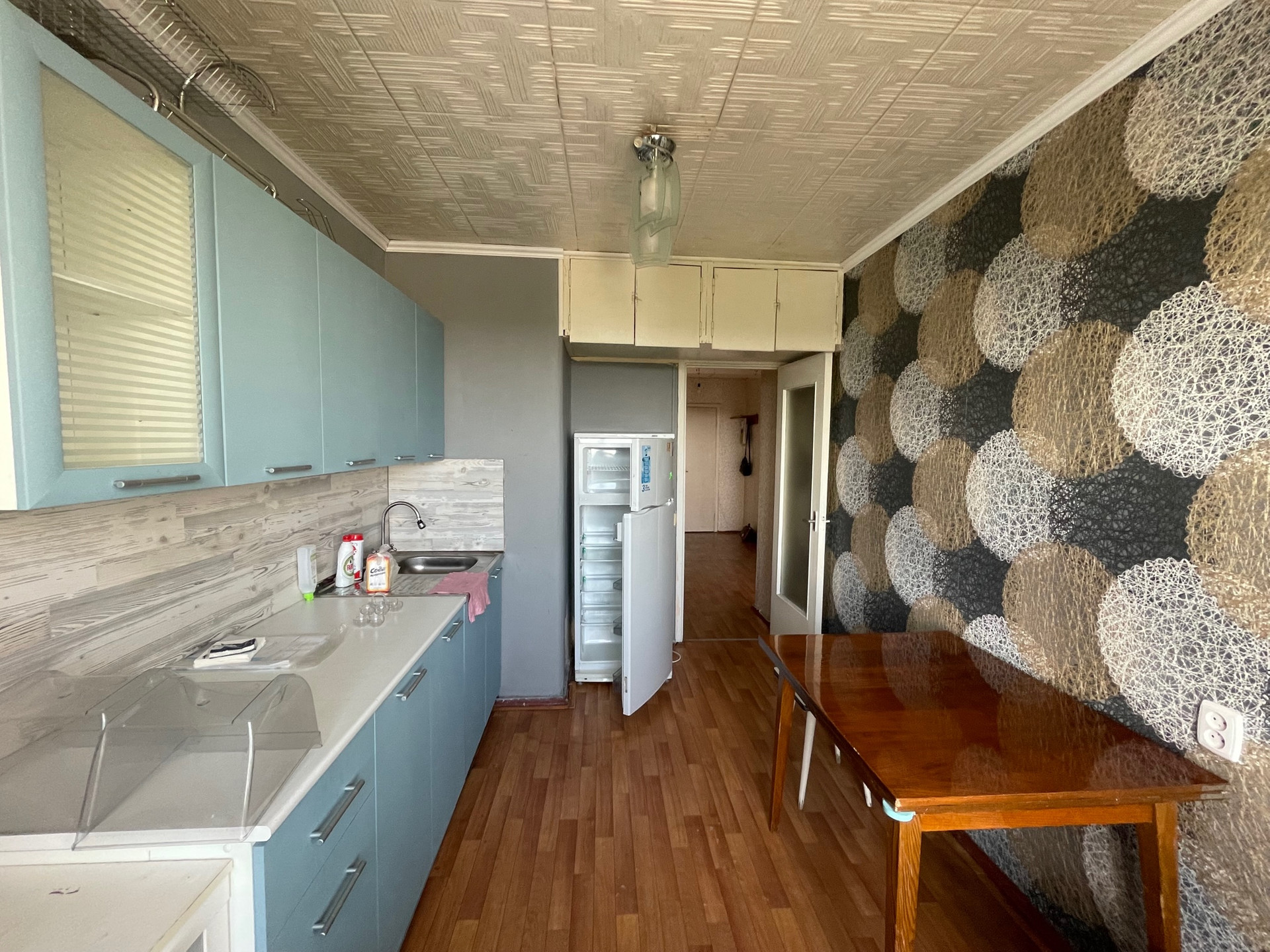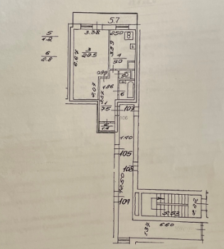 Общ. Площадь квартиры 42,4 м2, жил. 20.5 м2, кух. 9,0 м2, просторная прихожая 8 м2, потолки 2.50 м, С/У раздельный, есть просторная кладовая, большой балкон на комнату и кухню. Один собственник.   Состояние удовлетворительное, не убитое, можно въехать и жить. Остается кухонный гарнитур,  стиральная машина.