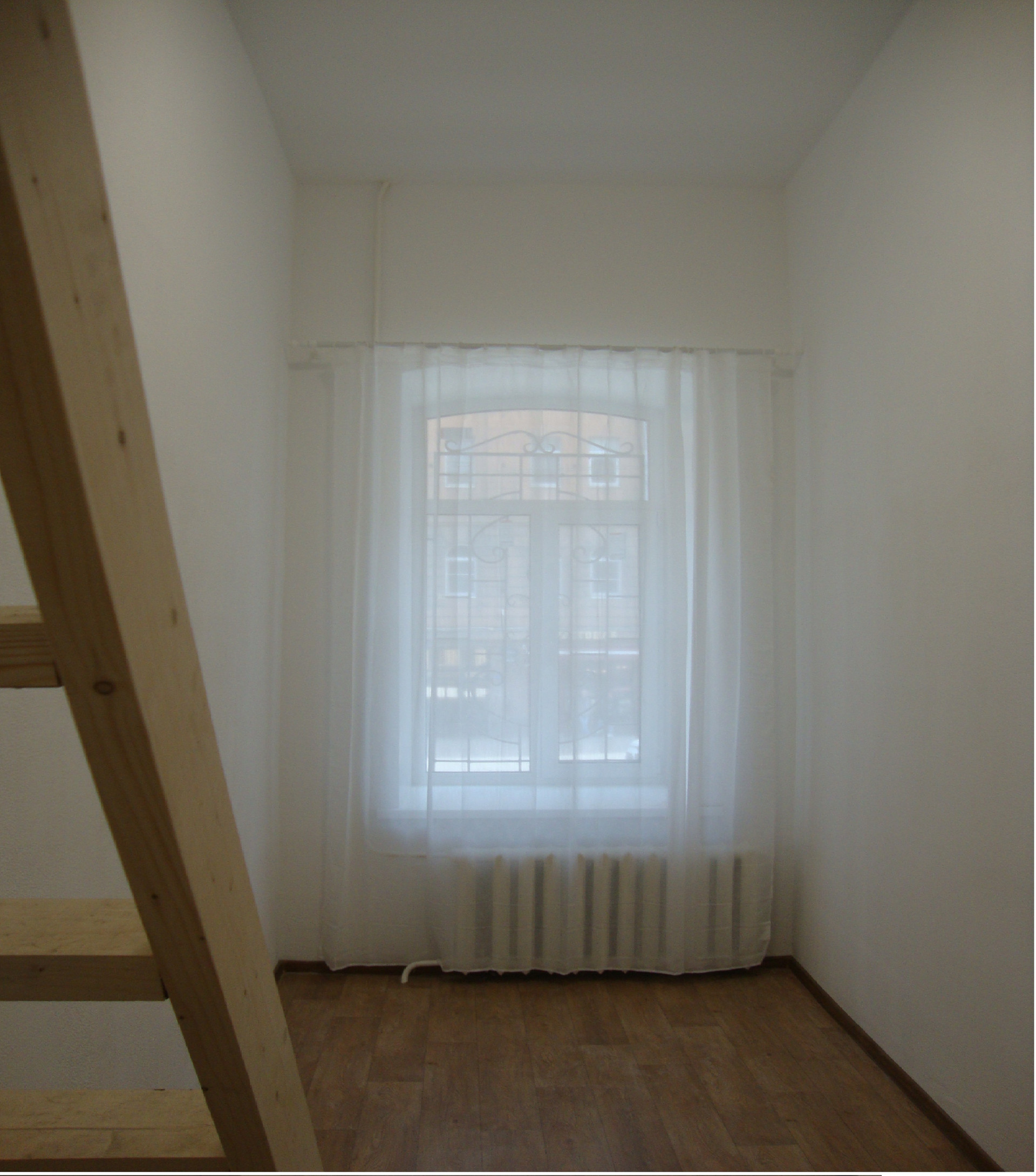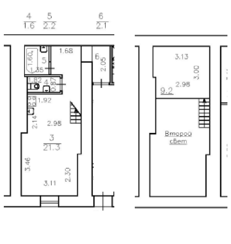 Студия двухэтажная, площадь ДВУХ этажей - 36 кв.м, см. приложенный план, высота второго этажа 1,6 м, можно использовать как полноценную спальню или кабинет. Окно со стеклопакетом смотрит на юг, в большой светлый двор, солнечная сторона. В студии оборудован совмещенный санузел, место под кухню.