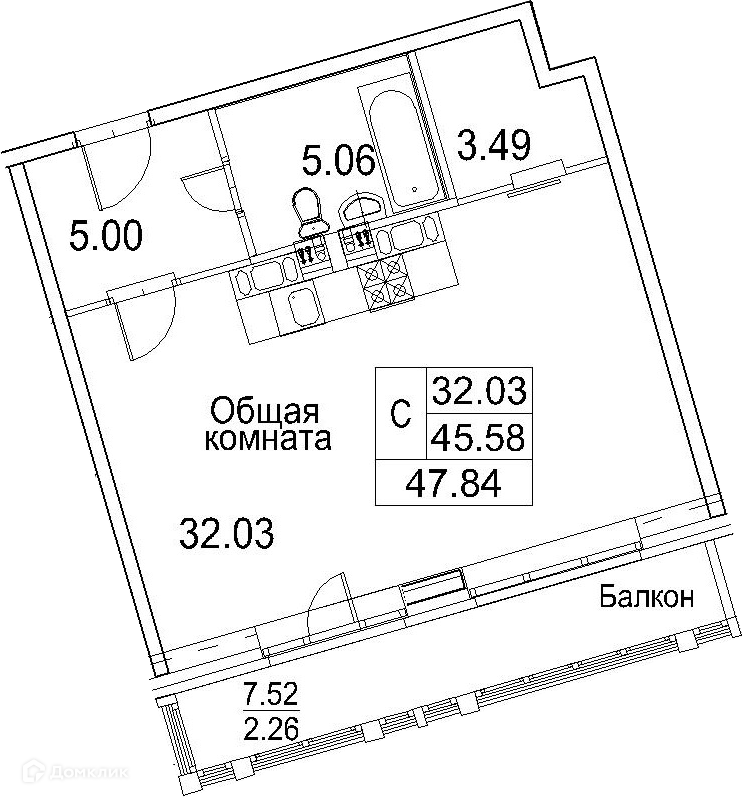 Общая площадь 47.84 м2