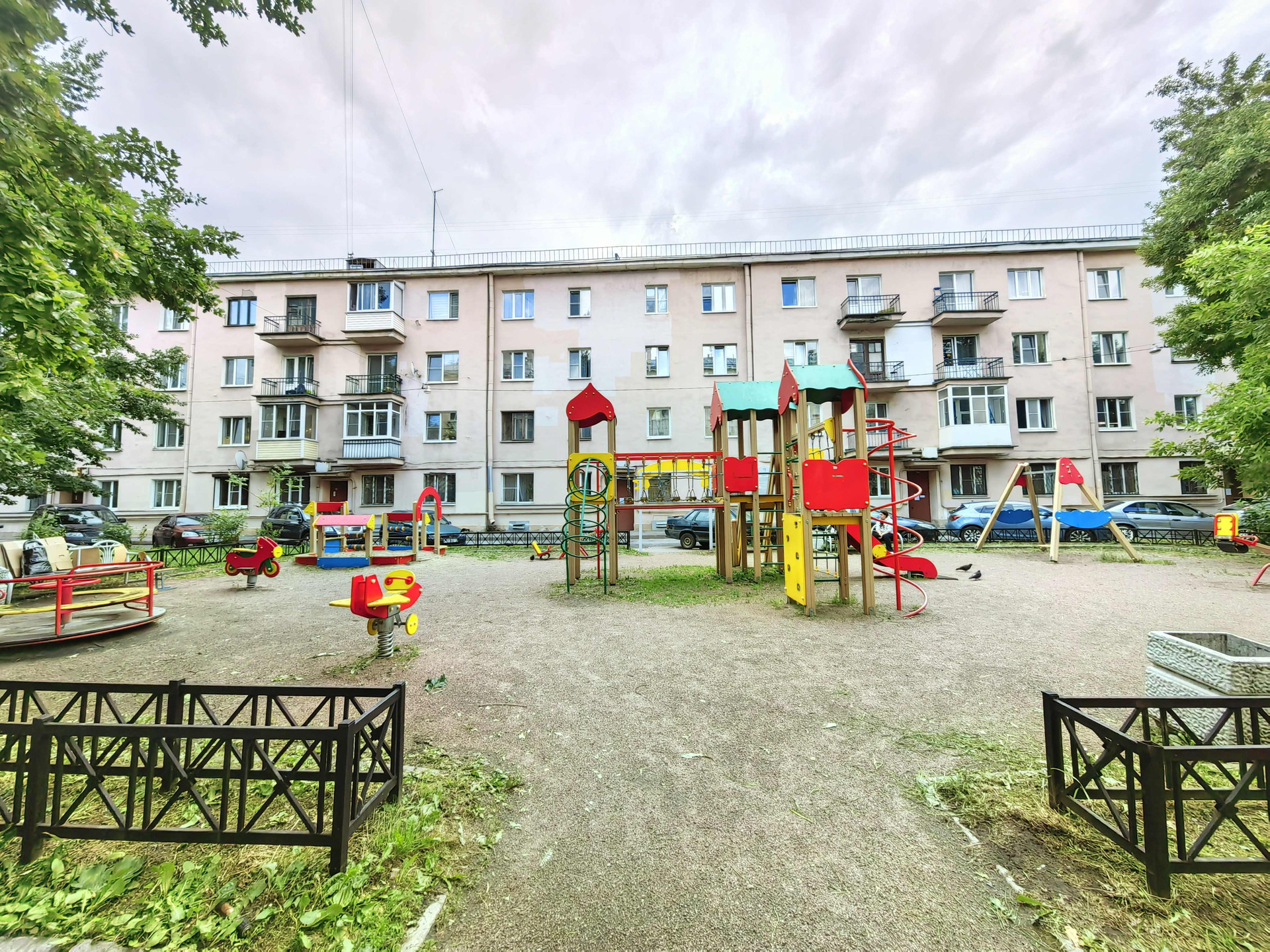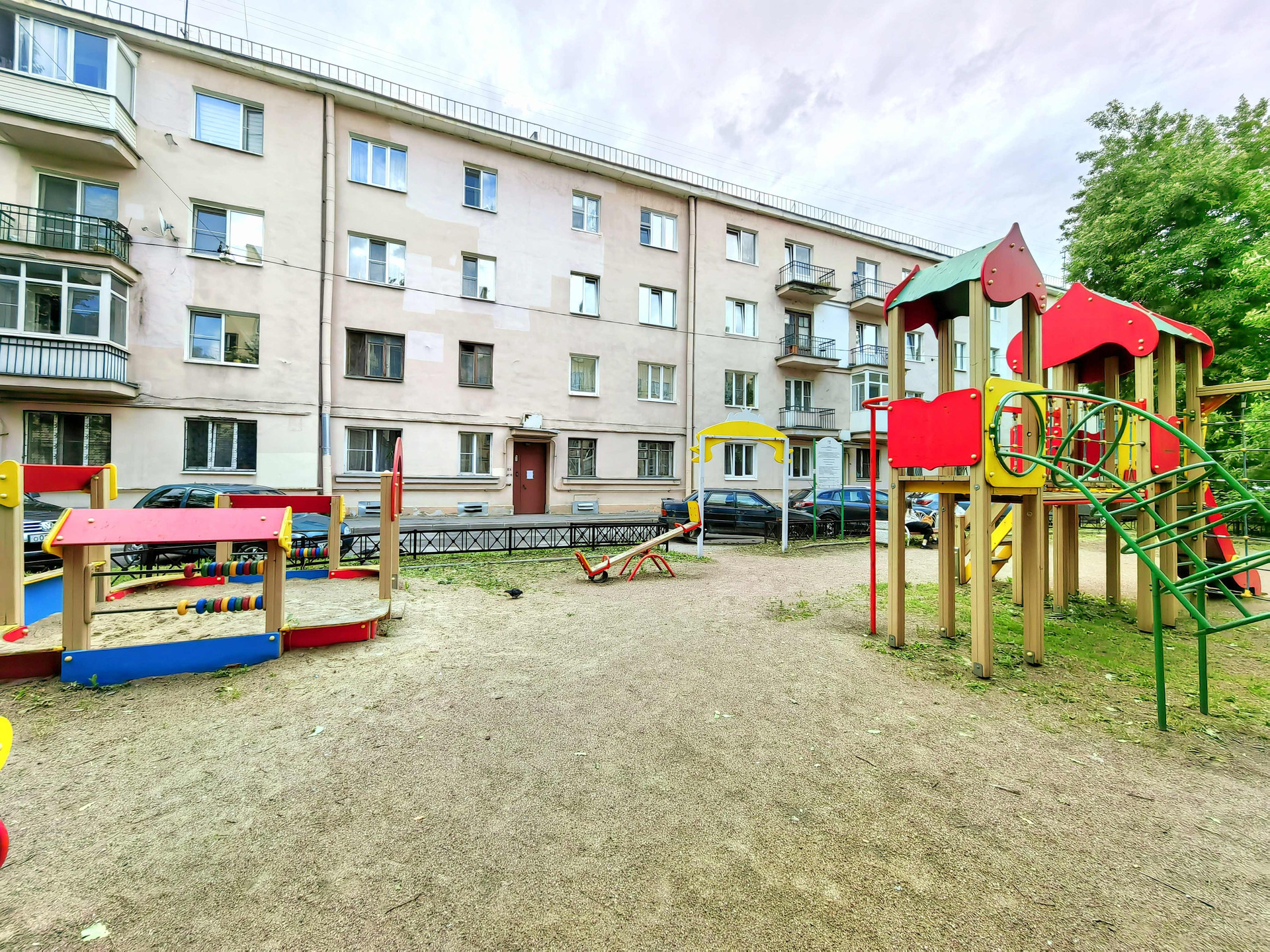 - Для прогулок с детьми и просто отдыха достаточно выйти из дома! С обеих сторон дома расположены детские площадки со скамейками, окруженные шикарными деревьями, кустами сирени. Рядом с домом расположены Кировский сквер, сад Девятого января. Недалеко от дома сад Кирьянова, а так же парк Екатерингоф, в котором вы можете прокатиться на лодке!!!
