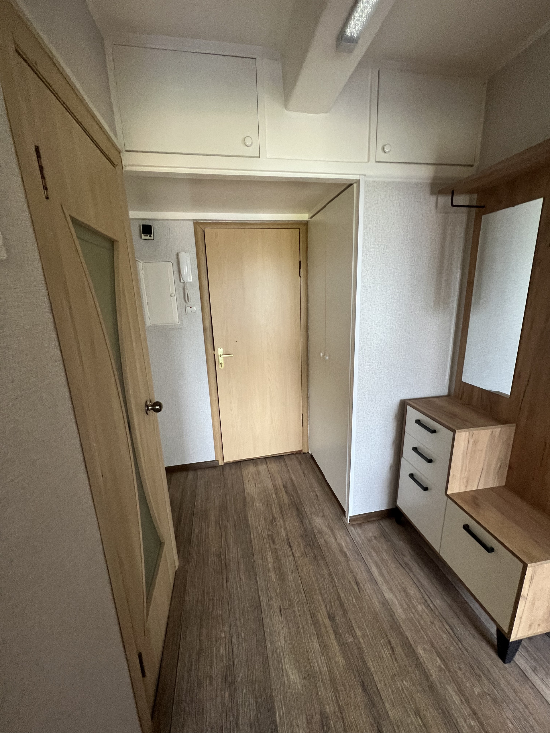 Общая площадь 31,1 м,кухня-8.2 м, комната-15.6 м, с/узел-раздельный, вместительная прихожая.