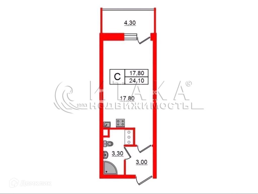 Жилая площадь 17,8кв м с выходом на застекленную лоджию 4,3 кв м. Совмещенный санузел 3 кв м и прихожая 2,9 кв м. Кухонный гарнитур и мебель остаются новым хозяевам.