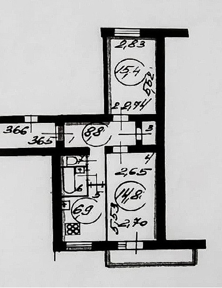 Площадь кухни 6.9 м2