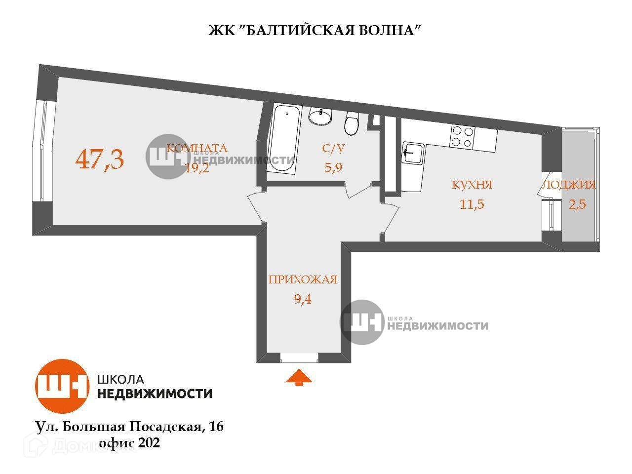 Общая площадь 47.3 м2