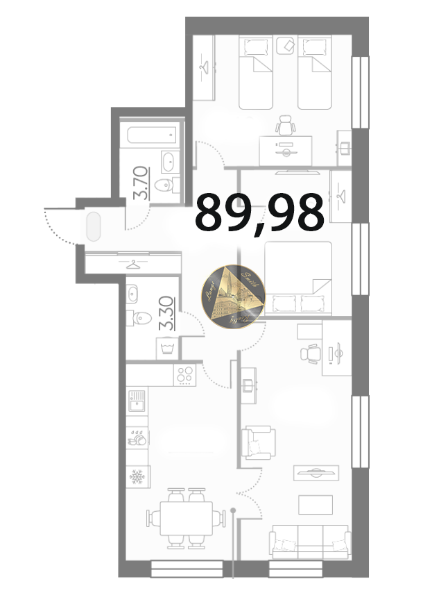 Срочно продаётся 3к квартира общей площадью 89,98 м2. Жилой комплекс расположен в Приморском районе. Жилой комплекс бизнес-класса. Всё что нужно для размеренной жизни.