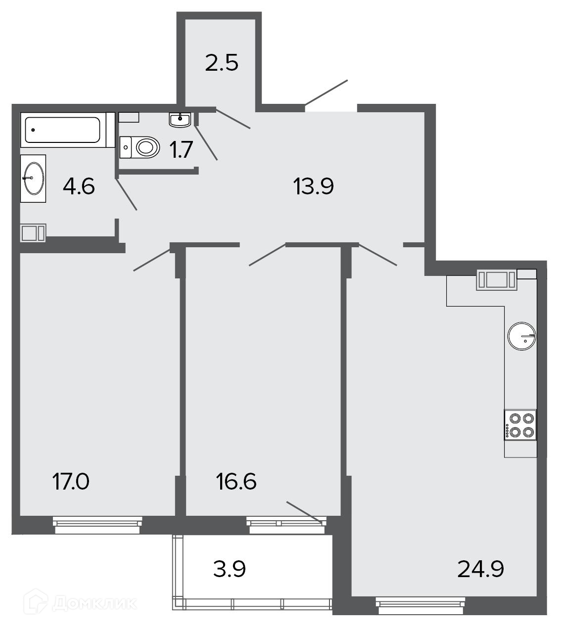 Площадь кухни 24.9 м2