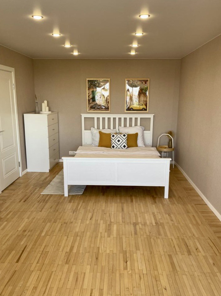 - пол выровнен в один уровень, без порожков (идеально для роботопылесоса и детей);