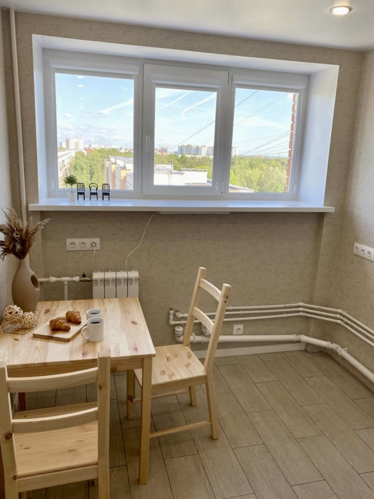 - кухня квадратная, отдельная удобная ниша под холодильник, мойку можно разместить под окном, вода и слив уже подведены, осталось заказать мебель и технику на ваш вкус, на окнах установлены ролеты блэкаут;