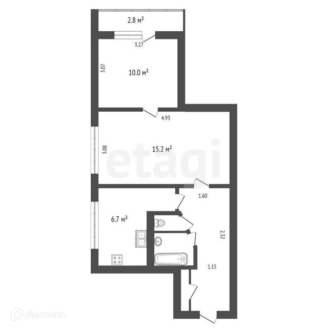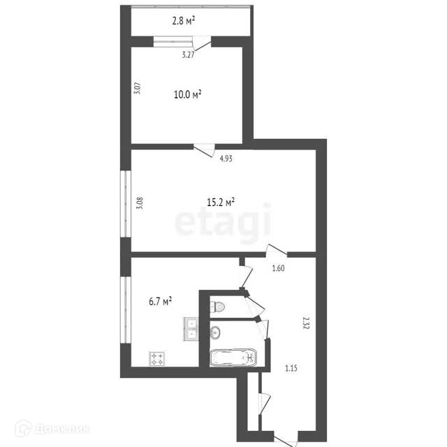 - Балкон 2.8 кв.м