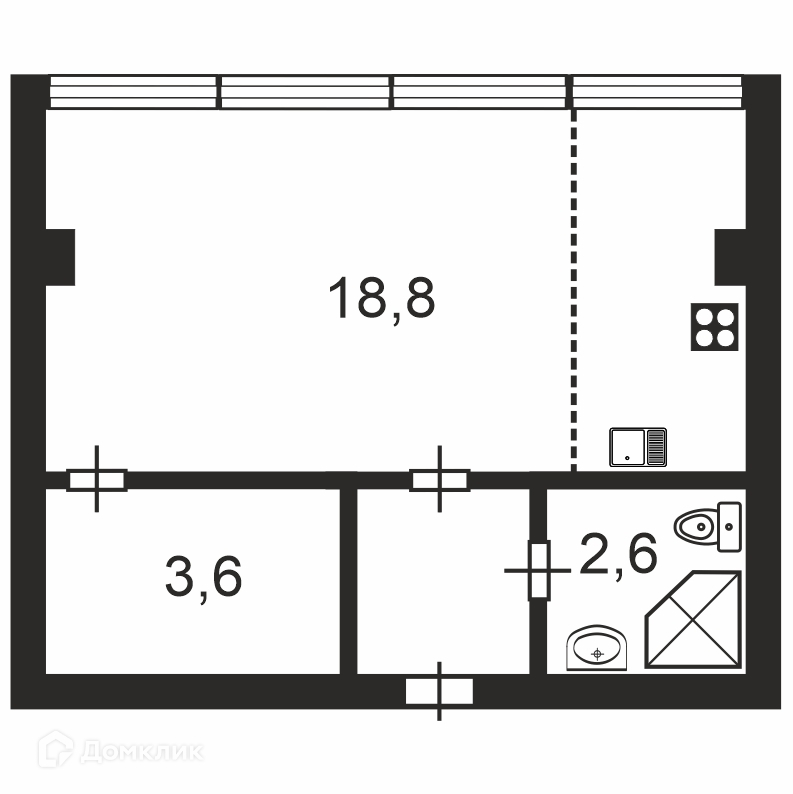 Жилая площадь 22.4 м2