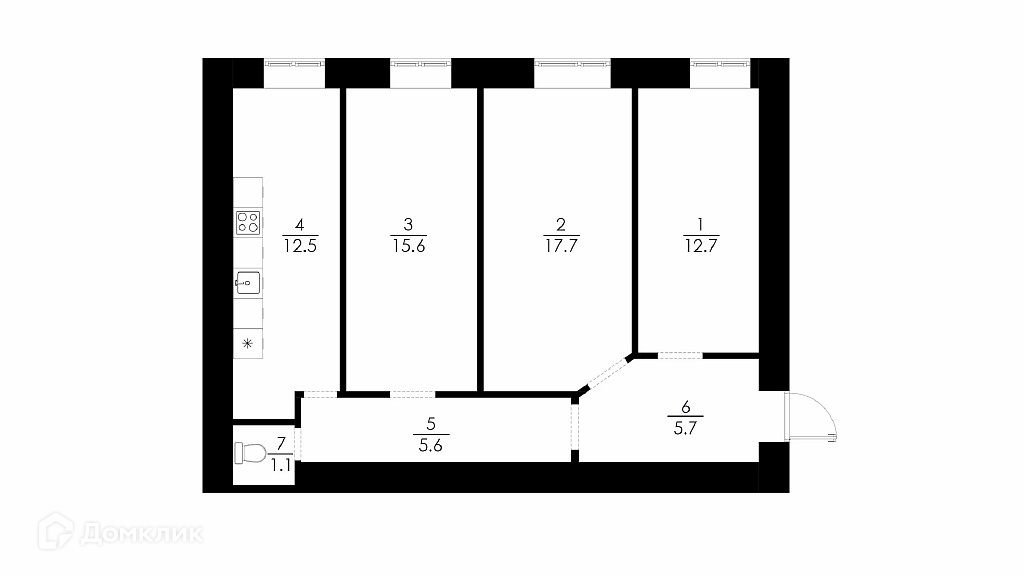 Площадь кухни 12.5 м2