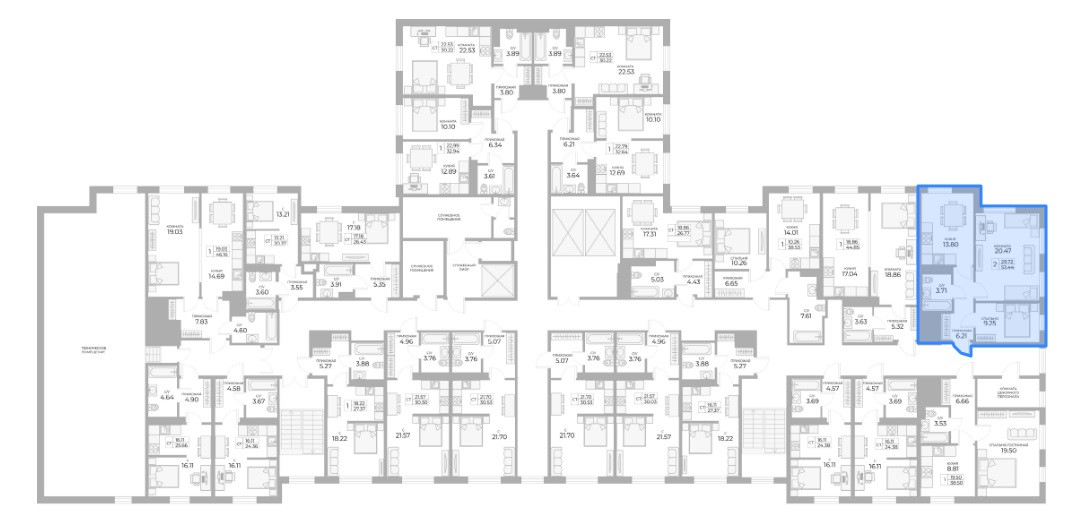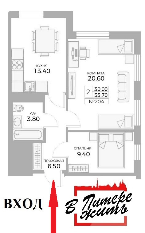 Общая площадь 53.7 м2