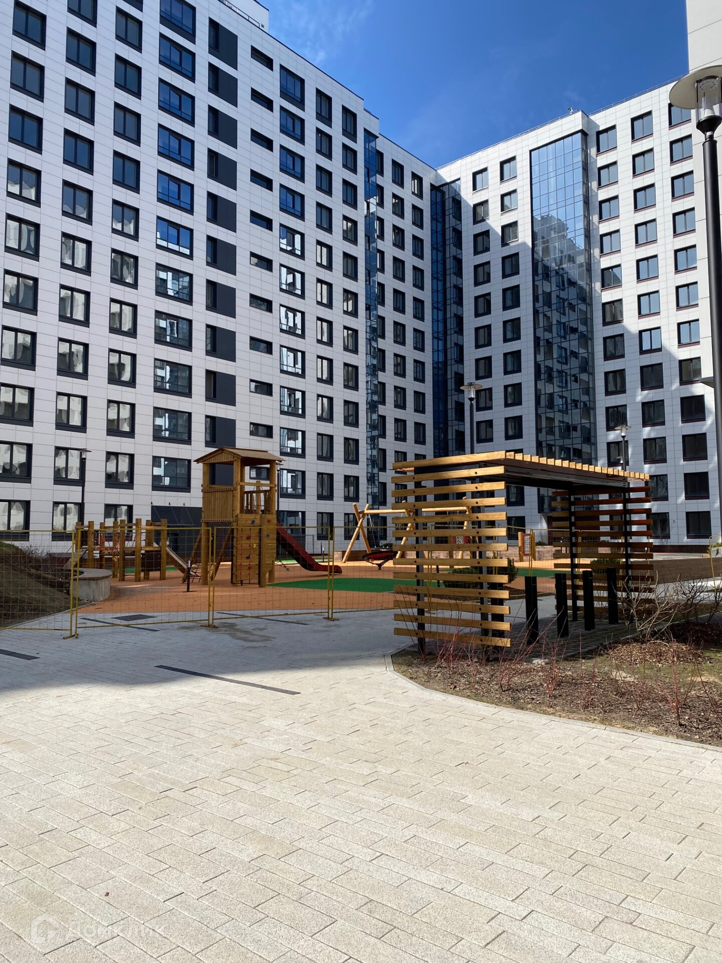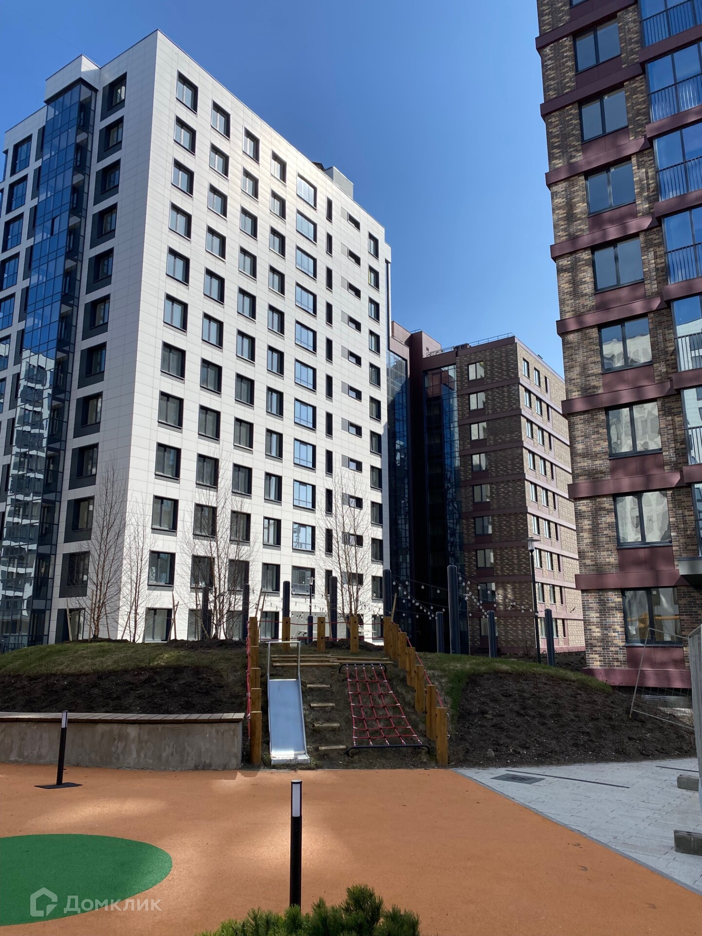 Во дворе дома, на территории, откроются три детских сада с бассейнами и школа. Дворы полностью свободны от машин. На детских площадках во дворах добавлены обучающие и интерактивные элементы, а игры нанесены на безопасное покрытие.