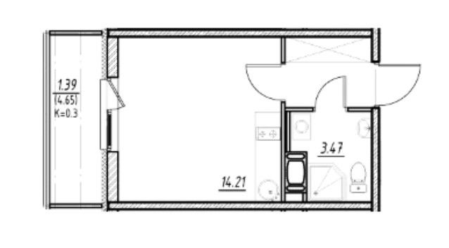 Балкон, лоджия 1 балкон