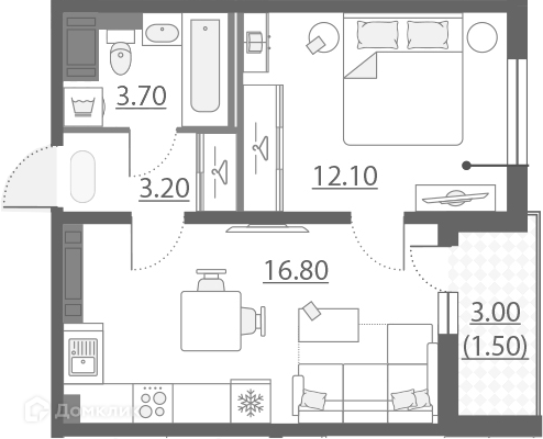 ✔️ Сантехника: Акриловая ванна с экраном и смесителем, раковина с пьедесталом и смесителем, унитаз напольный, полотенце сушитель, приборы учета (счетчики) холодного и горячего водоснабжения.