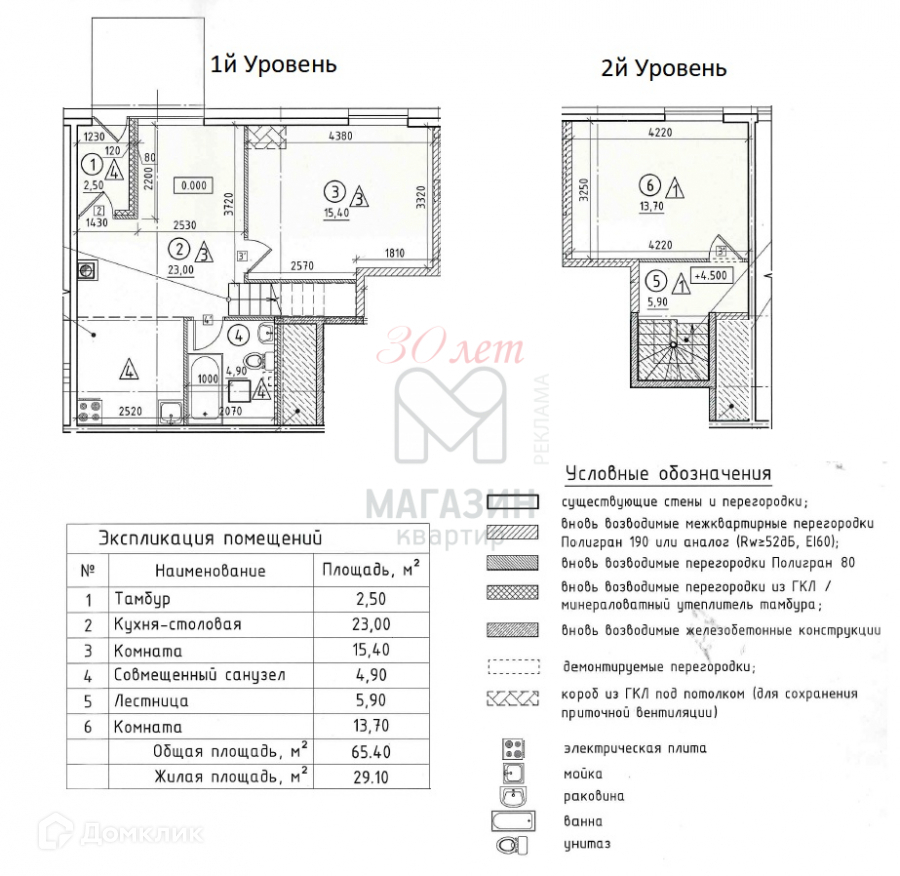 Общая площадь 65.4 м2