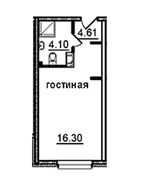 Жилая площадь 16.3 м2