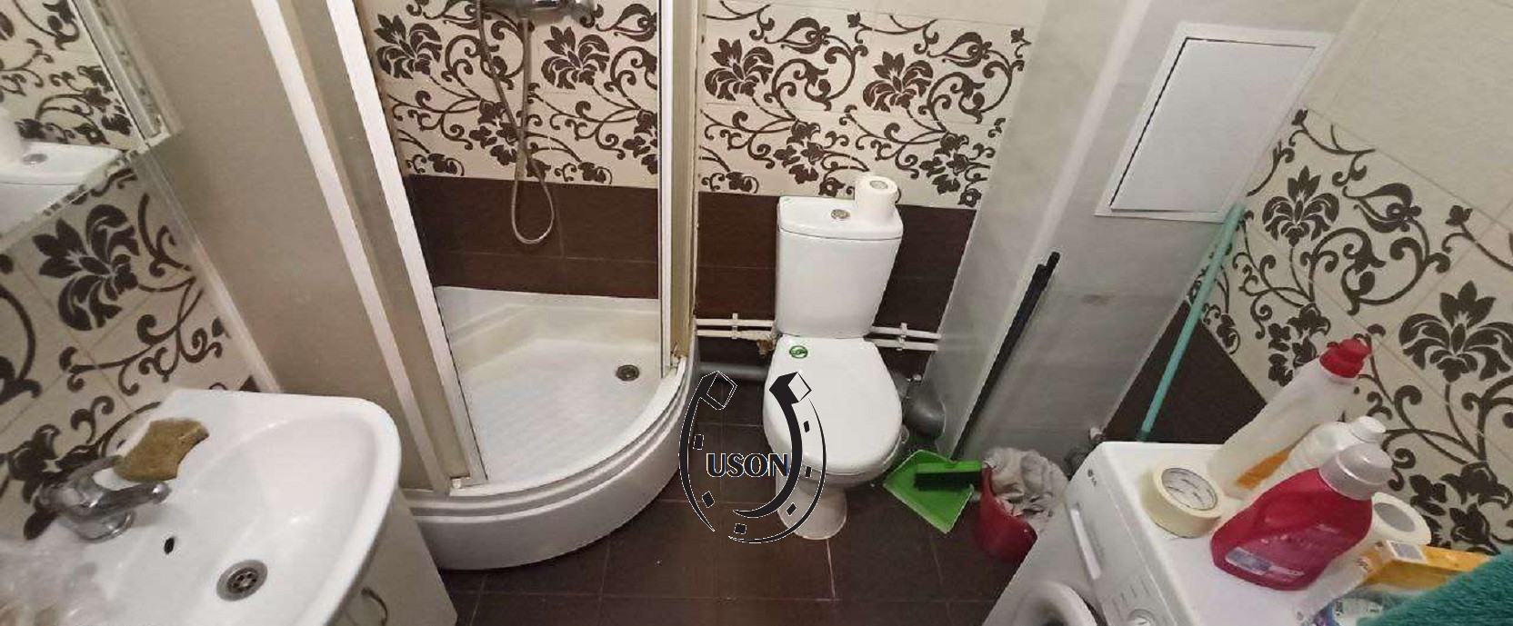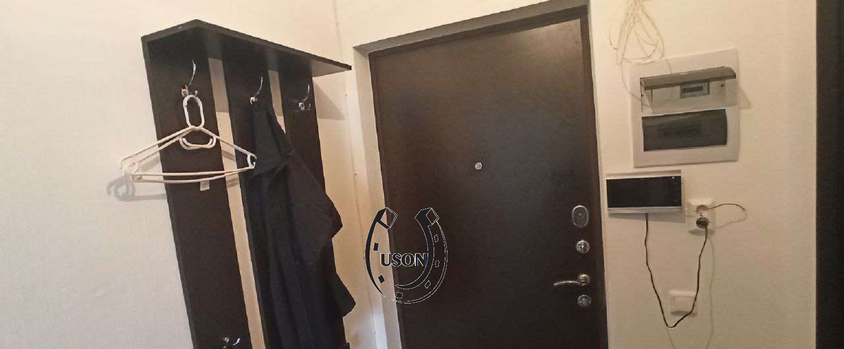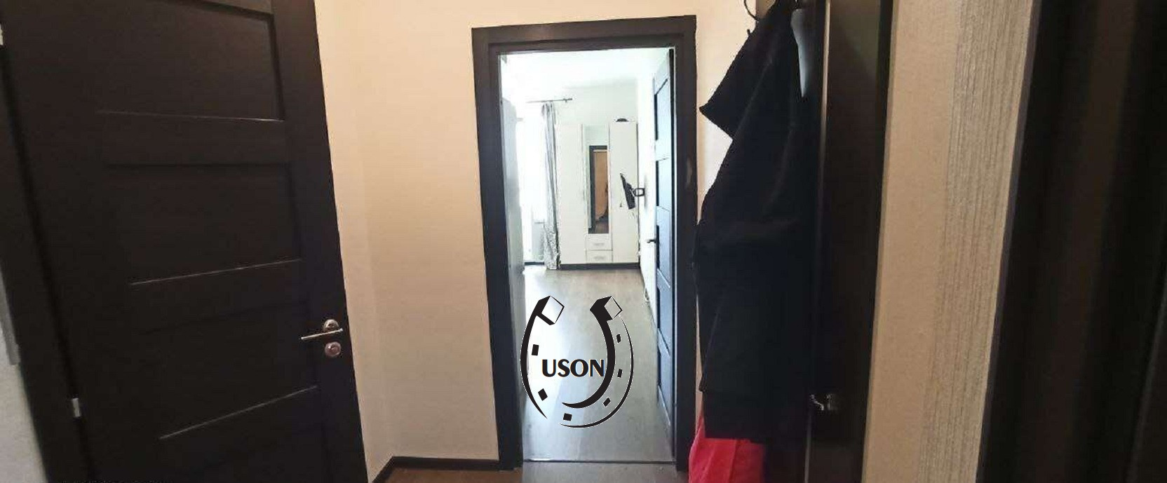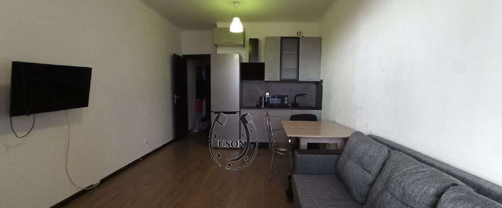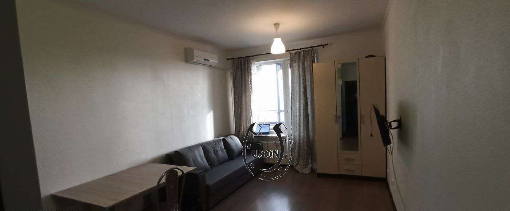 Студия 25 м2, +большой балкон, остаются: стеллаж для хранения вещей, кухонный гарнитур, индукционная плита, встроенный фильтр для воды, вытяжка, шкаф, стол кухонный. Установлен видео домофон.
