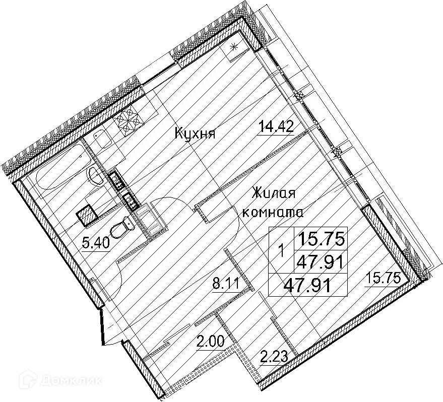 Общая площадь 47.91 м2