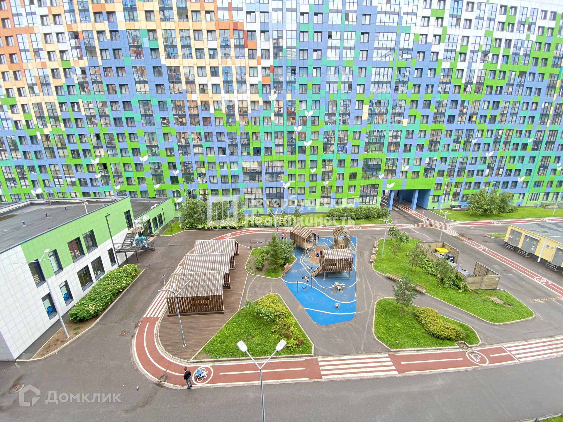 Закрытая территория от автомобилей. Благоустроенные детские и спортивные площадки, зоны отдыха, прогулочный променад. В шаговой доступности набережная реки Невы, многоуровневый паркинг, магазины, пекарни, школы, детские сады, фитнес клуб, МФЦ. Во дворе ЖК – детский сад.