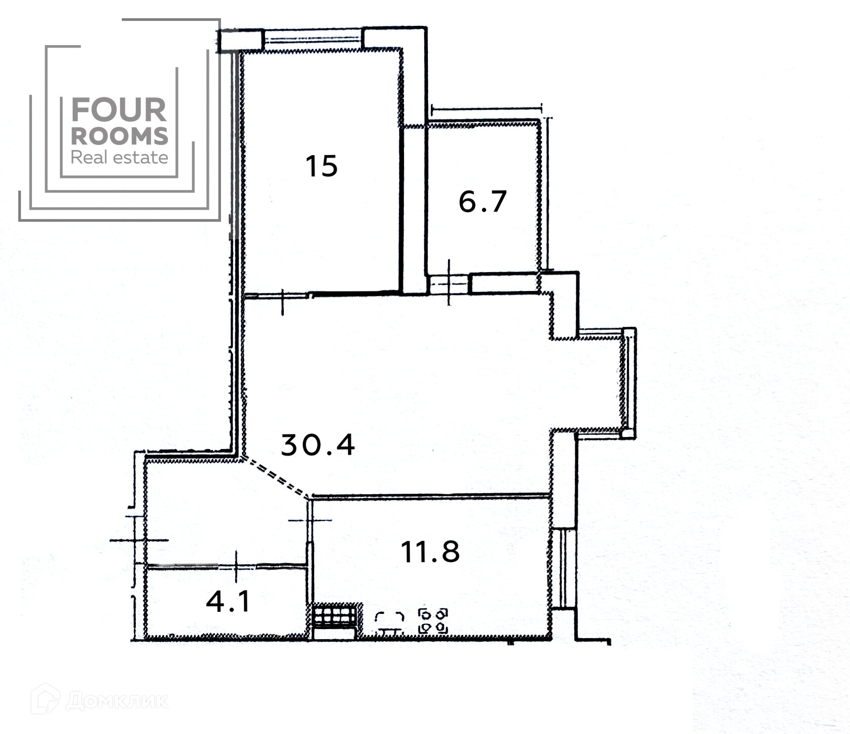 Общая площадь 61.3 м2